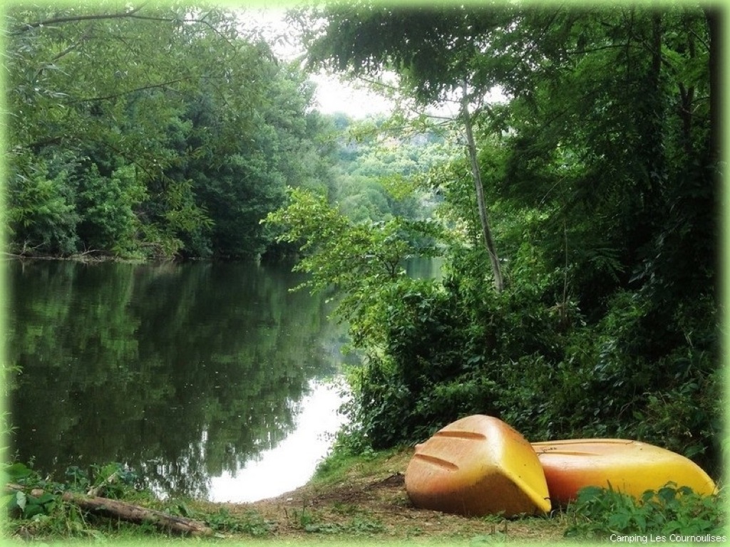 Sehr naturbelassener, ruhiger und schattiger Campingplatz mit 40 Stellplätzen am Flussufer (Lot), am Fuße einer Klippe, inmitten von Vögeln und Bambus..