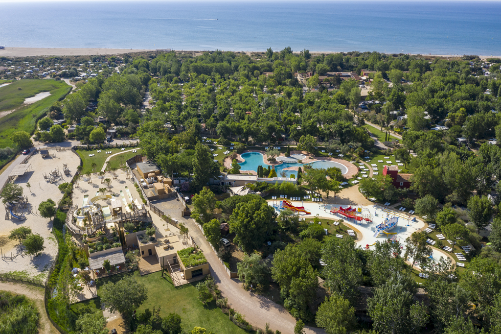 An der Mittelmeerküste ist das Yelloh Village Le Sérignan Plage eine grüne Insel an einem großen Strand inmitten von geschützten Landstrichen.