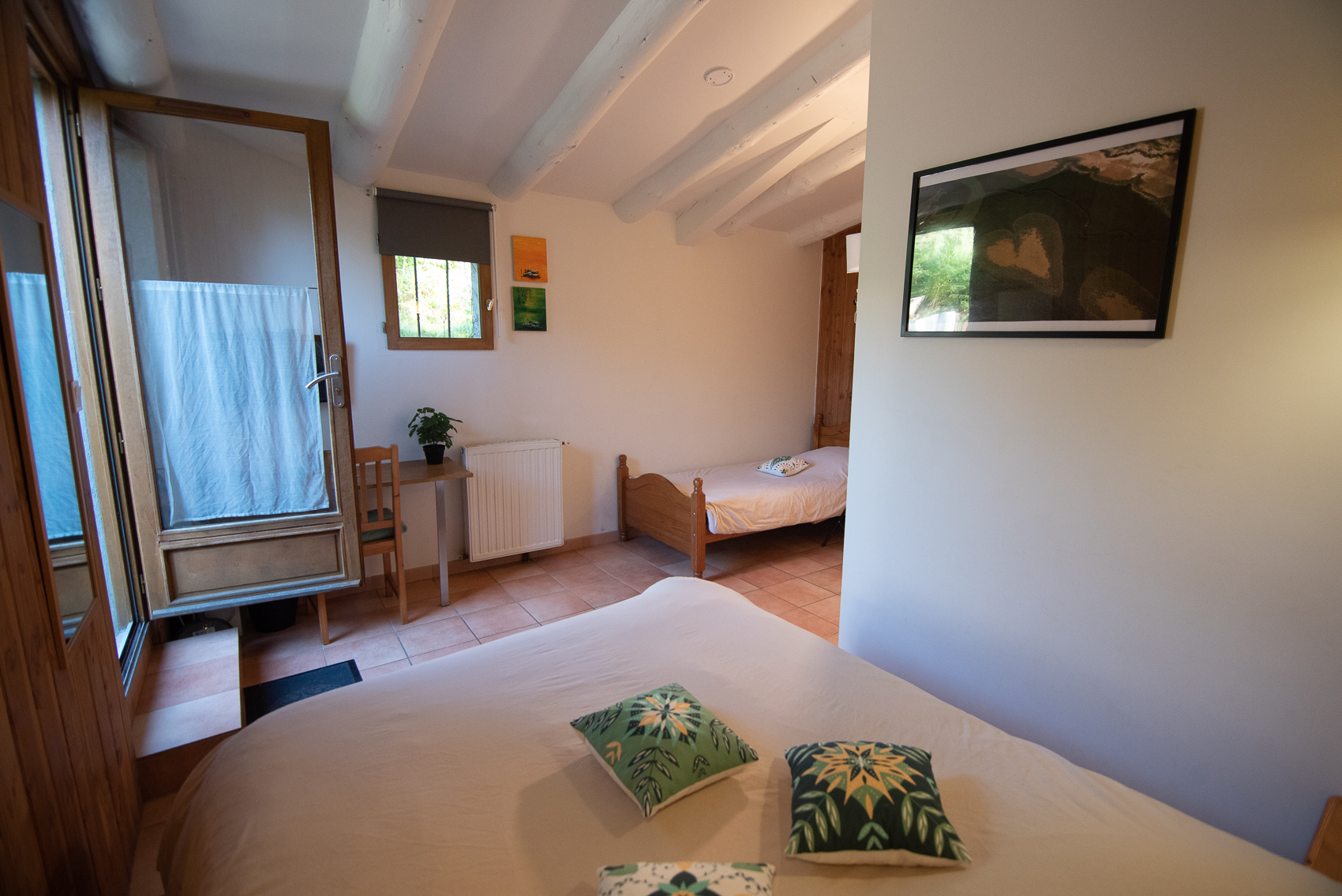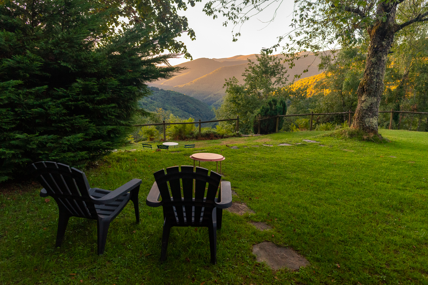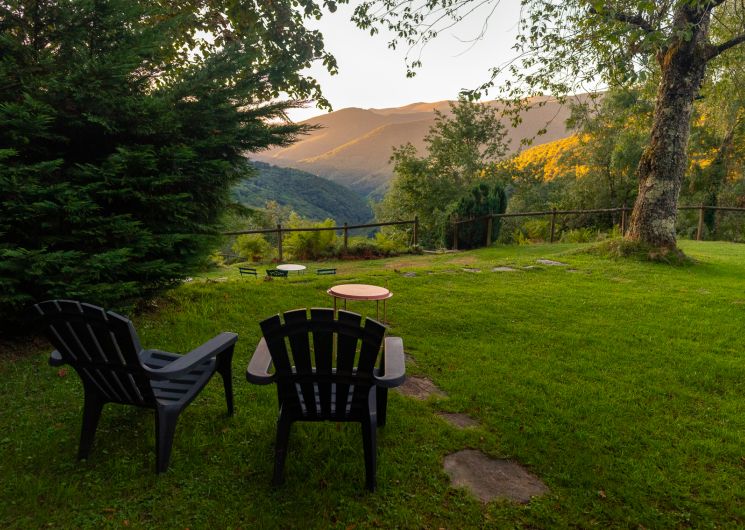 À 1000 mètres d’altitude, en lisière d’une forêt de sapins, vous pourrez flâner tout au long de la journée sur notre terrasse avec vue sur les Pyrénées.