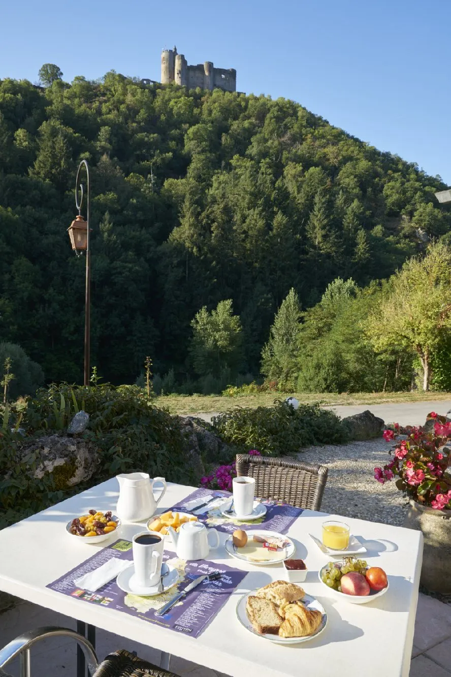 Hotel pleasantly situated on the banks of the river Aveyron 2 km from the village in a peaceful facing the château. Very large terrace.