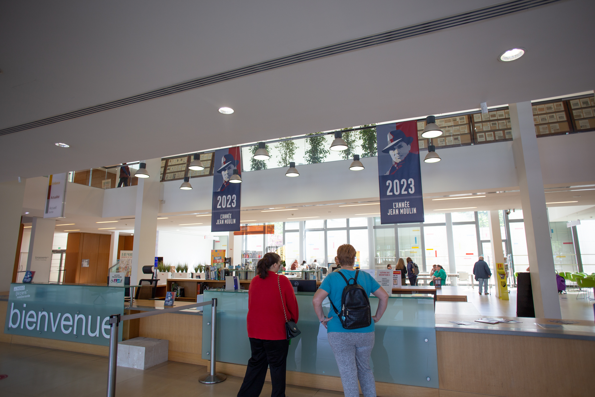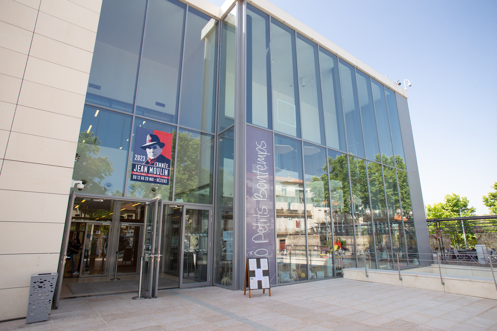 Die 2008 eingeweihte Mediathek wurde von dem Architekten Jean-Michel Wilmotte für den Großraum Biterro entworfen und verbindet Architektur, Hightech, nachhaltige Entwicklung und Multimediakultur. Sie liegt gegenüber dem Geburtshaus von Jean Moulin.