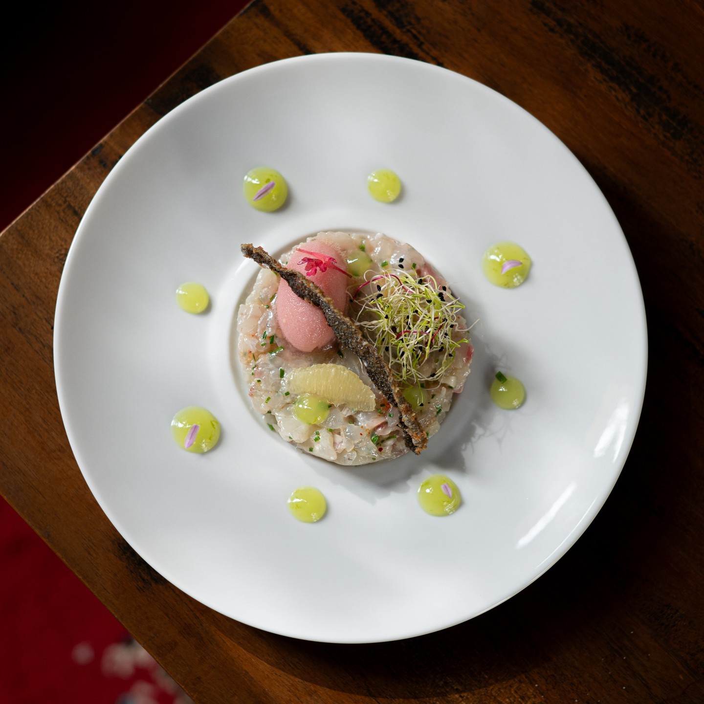 The chef showcases local produce through refined Mediterranean cuisine, accompanied by a selection of regional wines.
