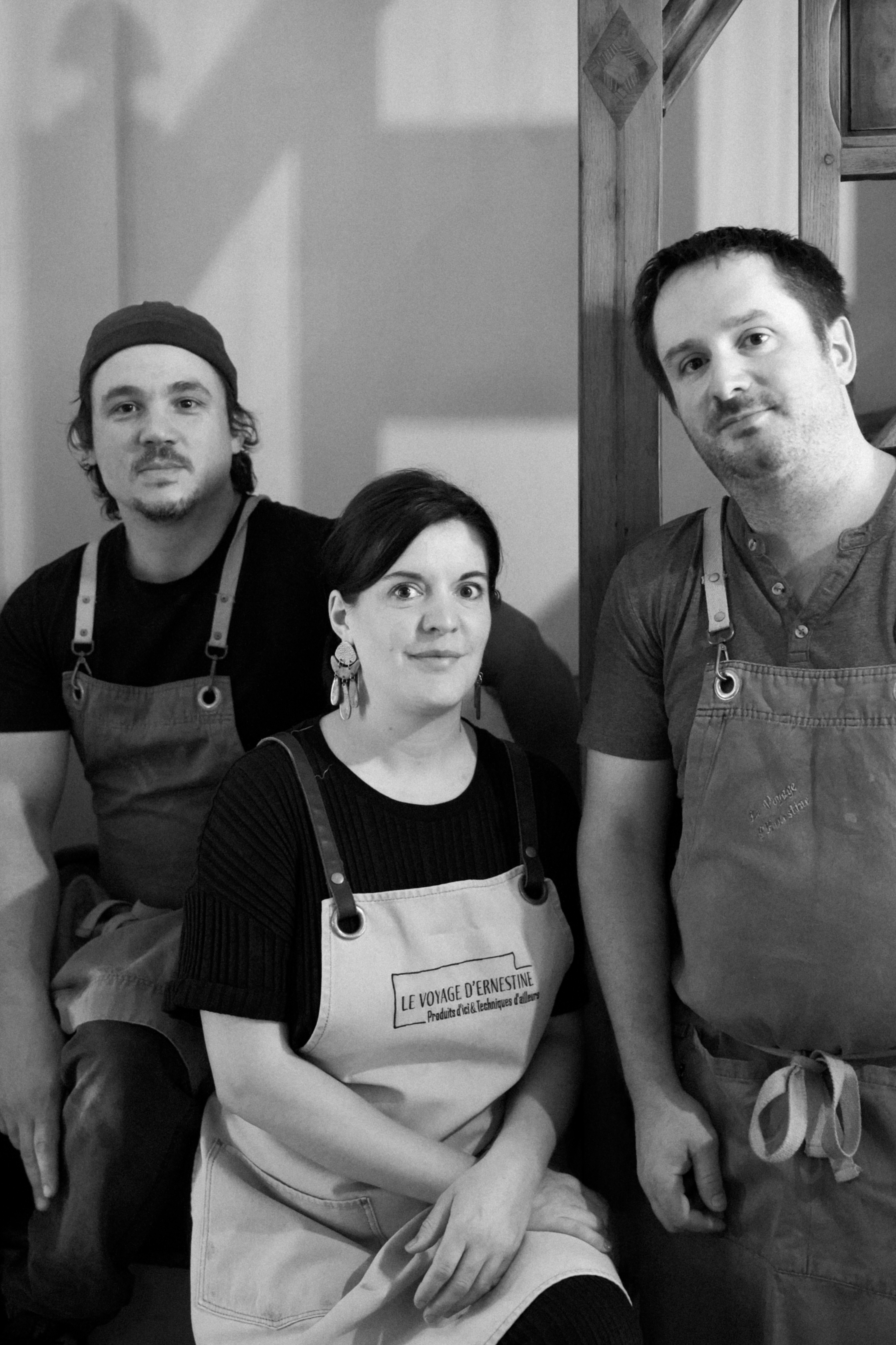 Célia, Robin und Adrien führen die Existenz dieses Ortes fort, indem sie ihn “Le voyage d’Ernestine” taufen. Dieser Name ist einprägsam und stellt die kulinarischen Techniken in den Vordergrund, die sie in Frankreich und im Ausland (Japan und Australien) mit den Produkten unserer Erzeuger und Gemüsebauern aus dem Lotois geübt haben. Die eklektische Weinkarte mit rund 100 Weinen umfasst konventionelle, biologische, biodynamische und natürliche Weine, die von leidenschaftlichen Winzern hergestellt werden, die von ihrer Arbeit überzeugt sind.