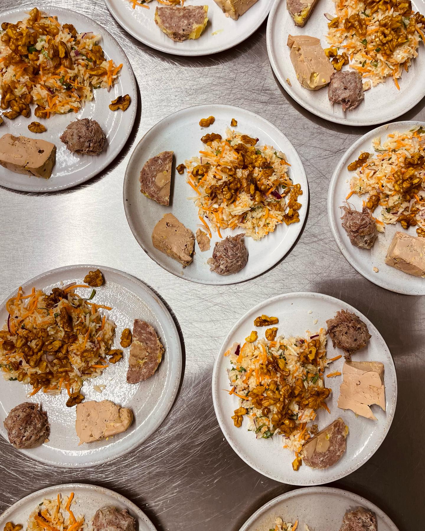 Spezialitäten: Bio-Kalbfleisch, Fette Ente, Tauben, von der katalanischen Küche inspirierte Zubereitungen, Entenbrust mit Kirschen, Kalbfleisch Pauline, Pfirsichflan. Rinder-, Enten- und Geflügelzucht im Tal der Castellane. Das Brot, das Gemüse, der Käse und der Wein kommen von unseren Freunden, den Bio-Produzenten. Mahlzeiten nur mit Reservierung