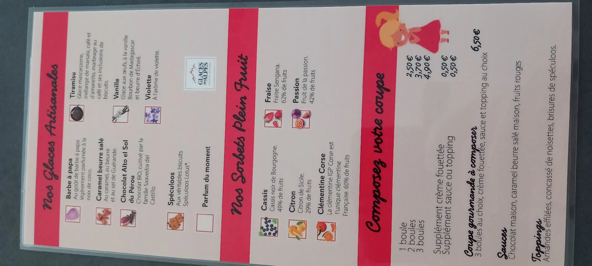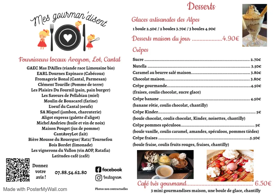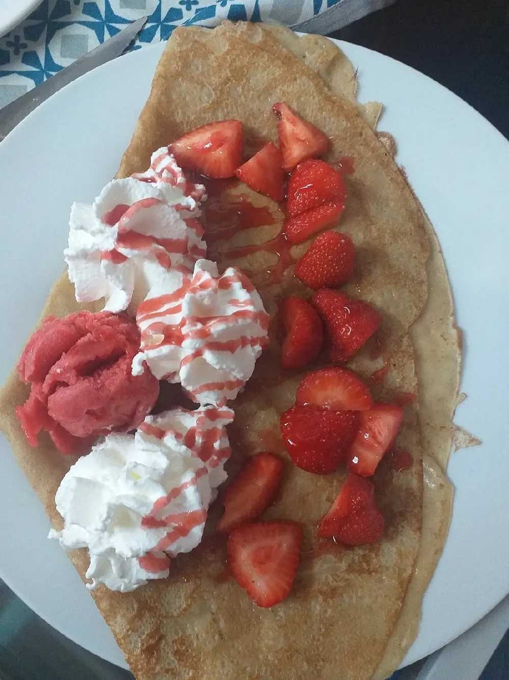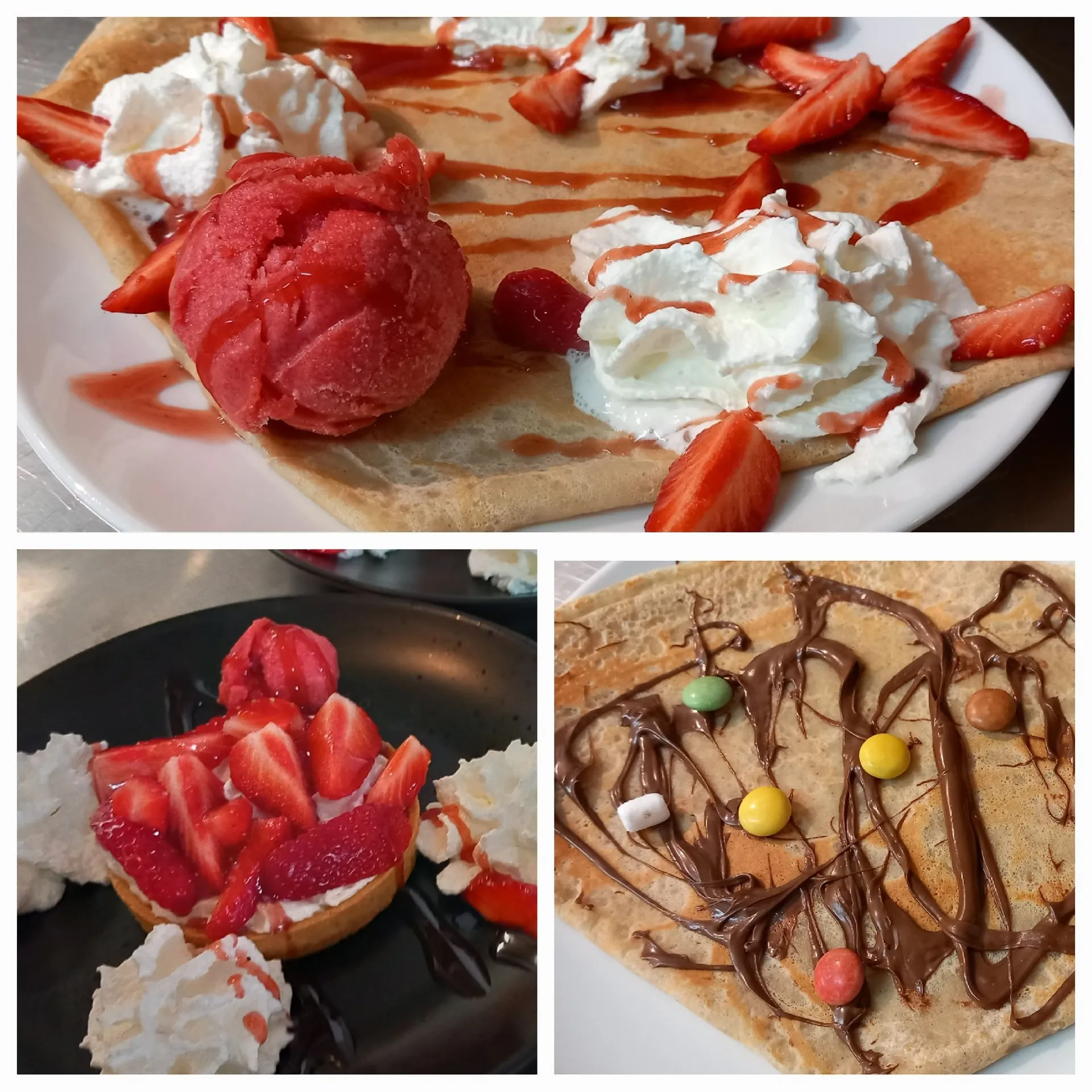 En dessert, crêpes, glaces, desserts du jour, smoothies.