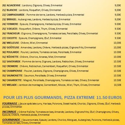 Pizzas “Chez Karine” has over 20 years’ experience. Homemade dough. All fresh products