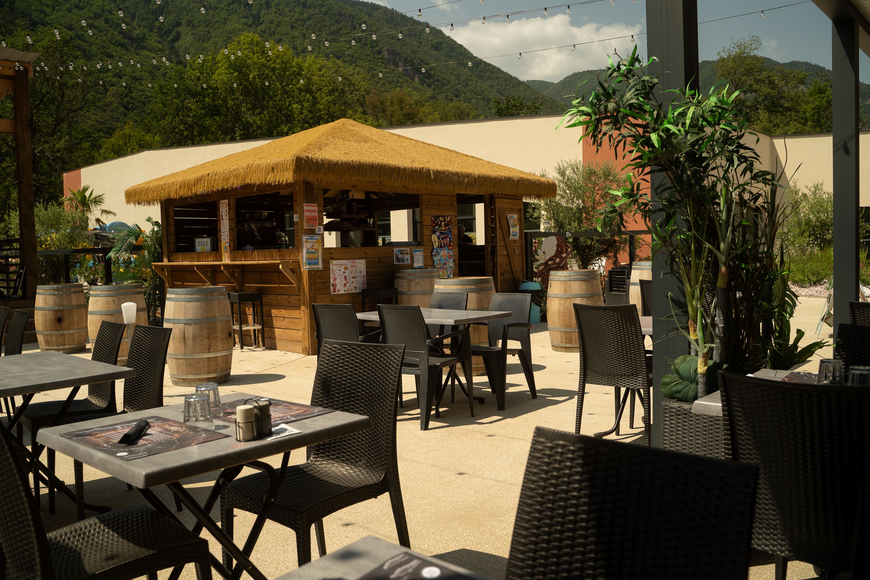 Sit on the south-facing terrace and enjoy a breathtaking view of the mountains! At the gateway to the campsite, this restaurant, open to all, welcomes you for a quick break or a real gourmet meal.