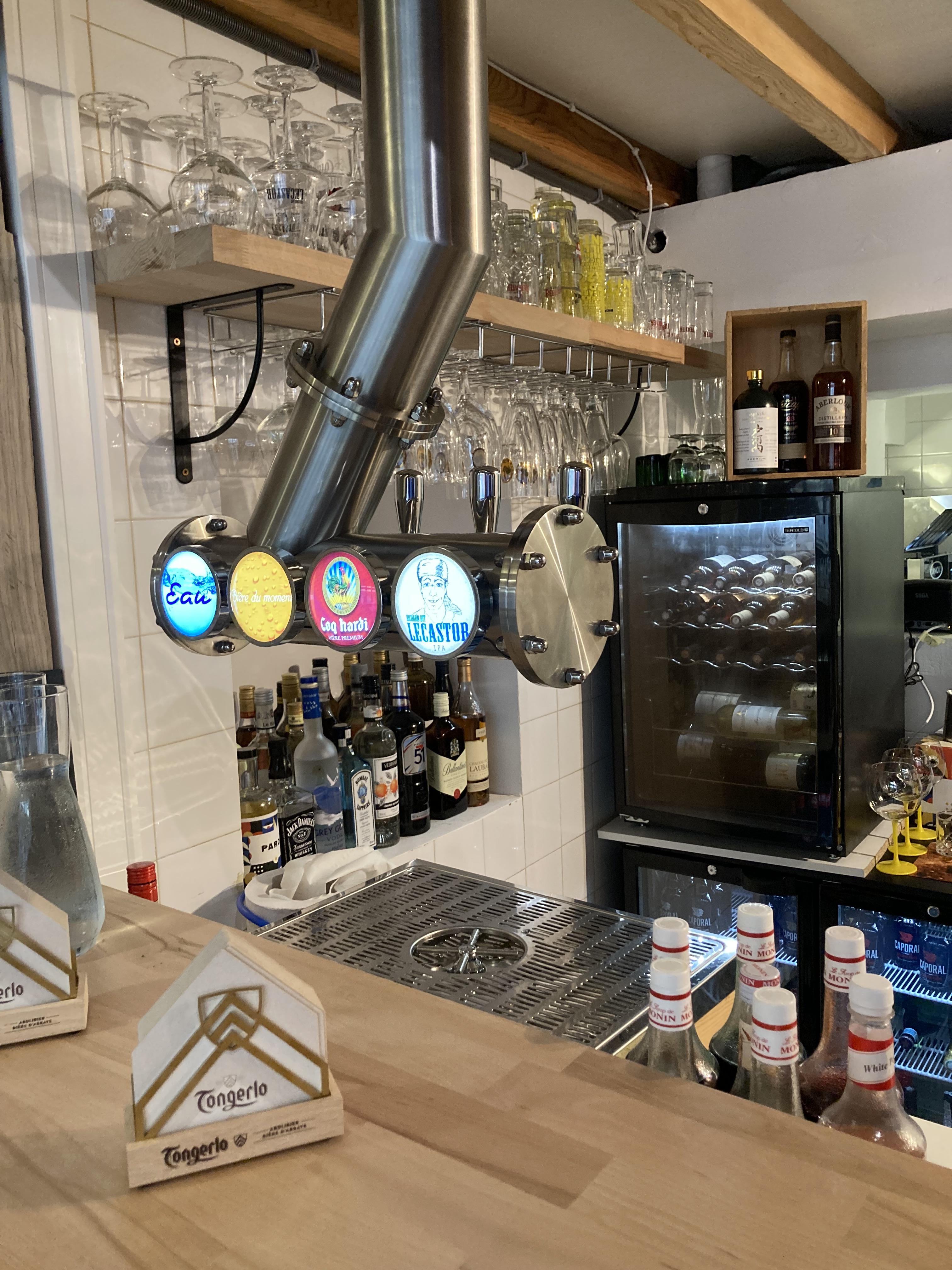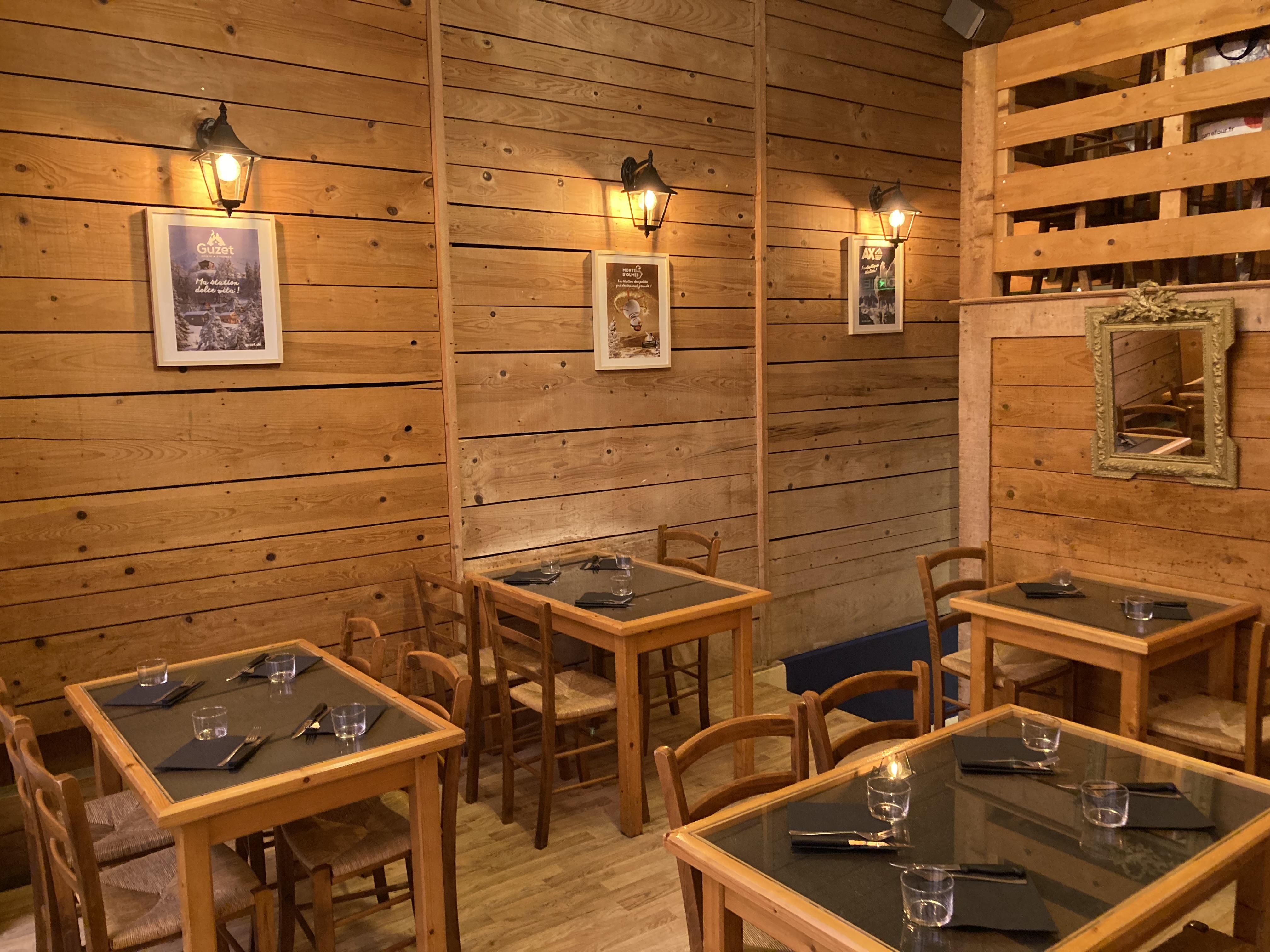 Inside, the 16-seat bar area, equipped with tables and stools, offers a convivial atmosphere. You can also enjoy home-made tapas, dishes and desserts in a mountain chalet atmosphere in the 18-seat dining room.