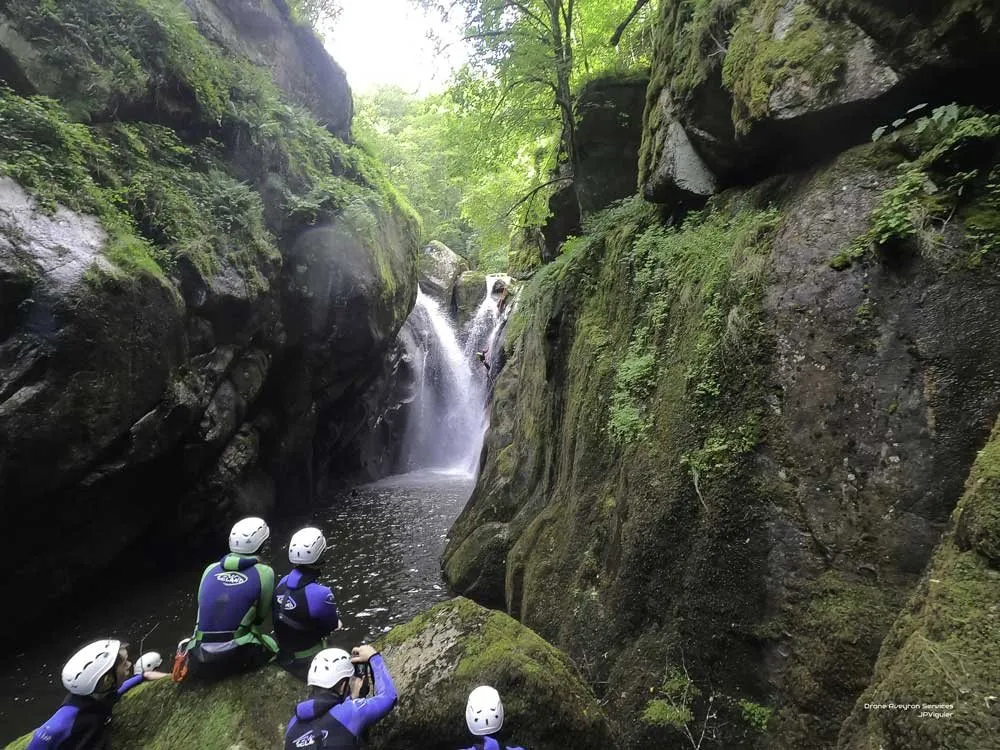 Canyoning dans le Nord-Aveyron. Canyons ludiques à souhait avec sauts, toboggans, descente en rappel, siphons etc. ou canyons techniques, tous les choix sont possibles.