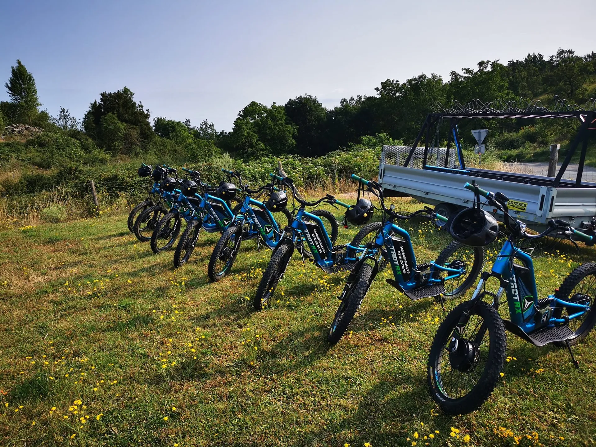 Équipé de deux roues motrices, le trott-cross est un moyen de transport ludique et fun pour découvrir les plus beaux paysages et chemins. Dès 14ans. Balade accompagnée par un moniteur.