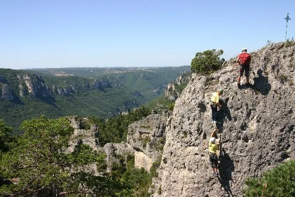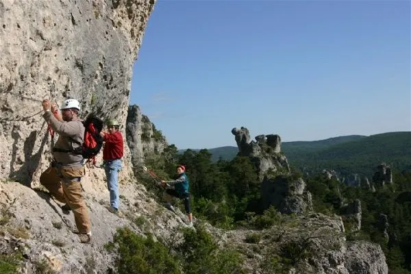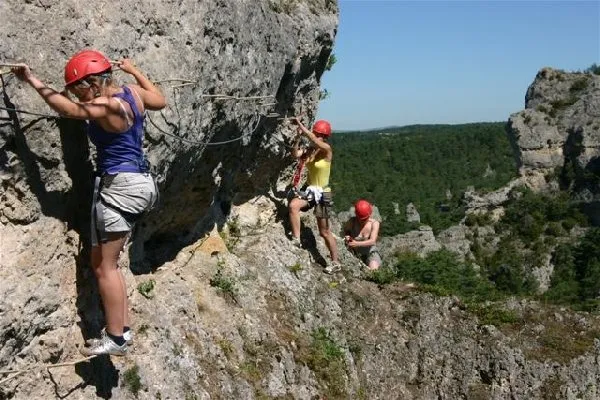 This unique Via Ferrata first descends into a cave (55 metres below the surface) to discover the underside of the Grands Causse before becoming aerial with a course along the ridges equipped with zip-lines, above a sumptuous landscape. Education Nationale approved. The Via Ferrata is open from 12 years old and more.