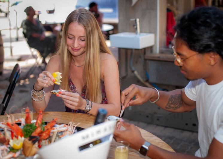 Thierry, a native of the Var region and a professional fisherman, and Louis offer tasty seafood platters. You’ll find oysters from the Etang de Thau, mussels, prawns, gambas and tielles sétoise, as well as lobsters and spider crabs.