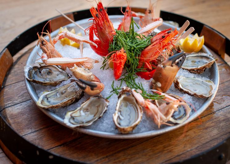 You’ll find oysters from the Etang de Thau, mussels, prawns, gambas and tielles sétoise, as well as lobsters and spider crabs.