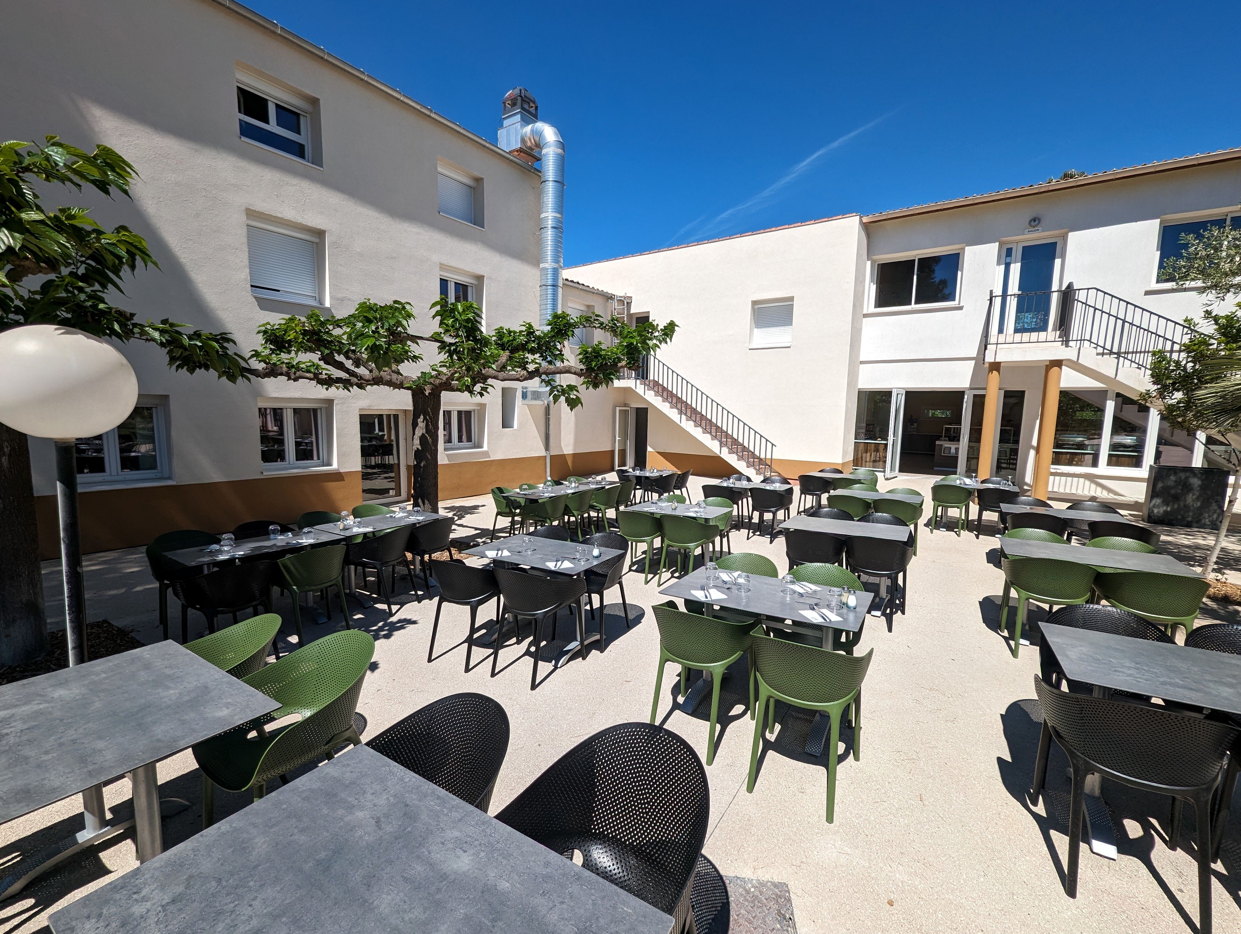 Outdoor dining is available on the terrace in fine weather, and the beaches 5 km from the vacation village – accessible on foot or by bike (rental available on site) – and the verdant setting are the charming assets of the “Domaine d’Agde”.