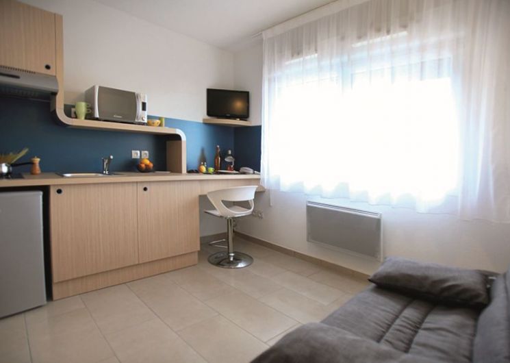 New residence facing North East / South / Southwest open sky. Well maintained, 100 studios spread over 3 floors. Furnished studio of 15m² composed of a main living room with kitchenette (hob, fridge, microwave), bathroom (shower, sink, toilet). Secure residence (video, electronic badge). Automatic laundromat inside the residence, parking outside the residence. Full-time on-site residential managers, as well as maintenance technician / full-time caretaker as well.