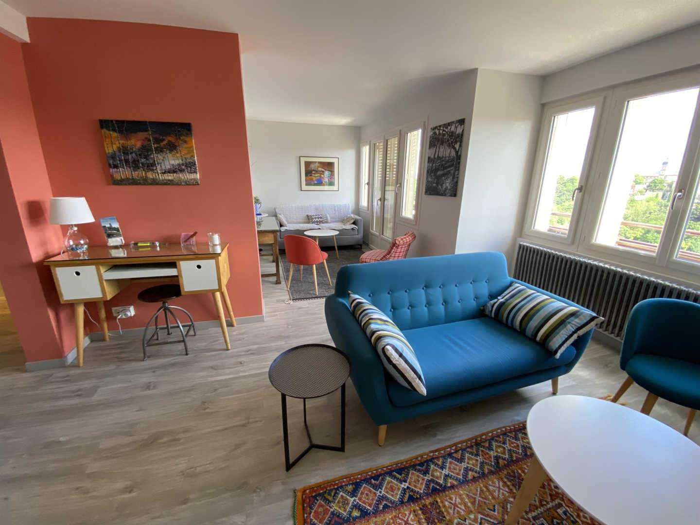Appartement Citybreak au 7ème et dernier étage avec ascenseur de la Résidence Parc Avril, en centre ville d’Albi, sur la rive droite de la rivière Tarn. Récemment rénové, climatisé, très lumineux, il offre une vue aérienne à 360° sur la ville, les quartiers anciens et la belle campagne environnante.