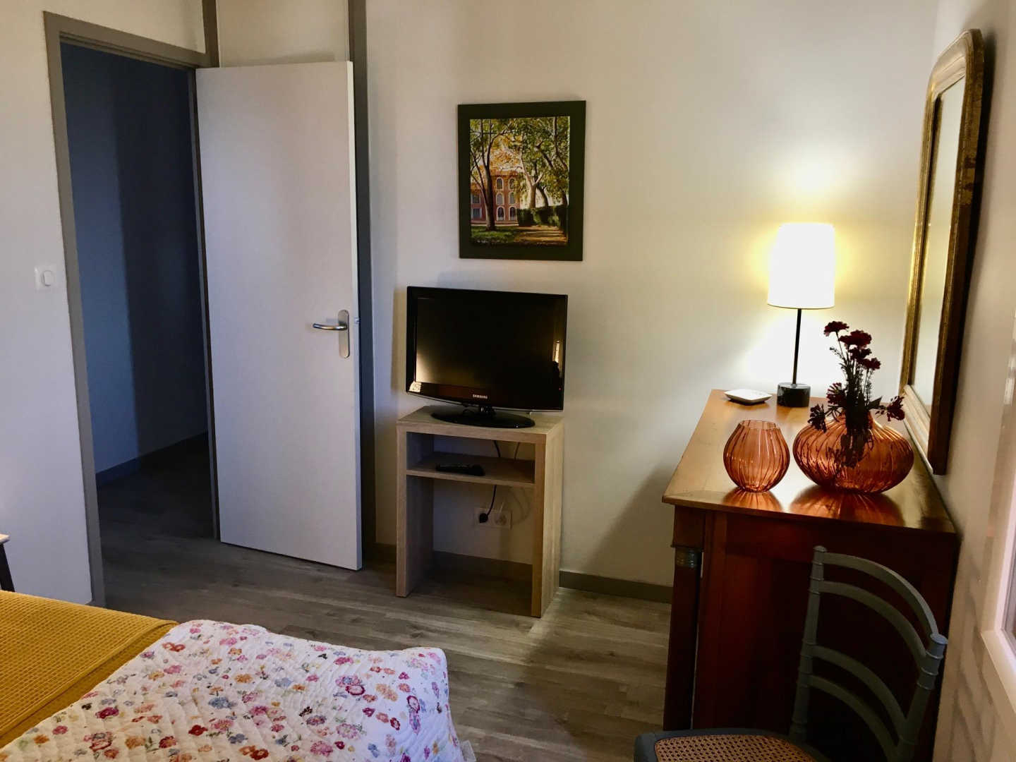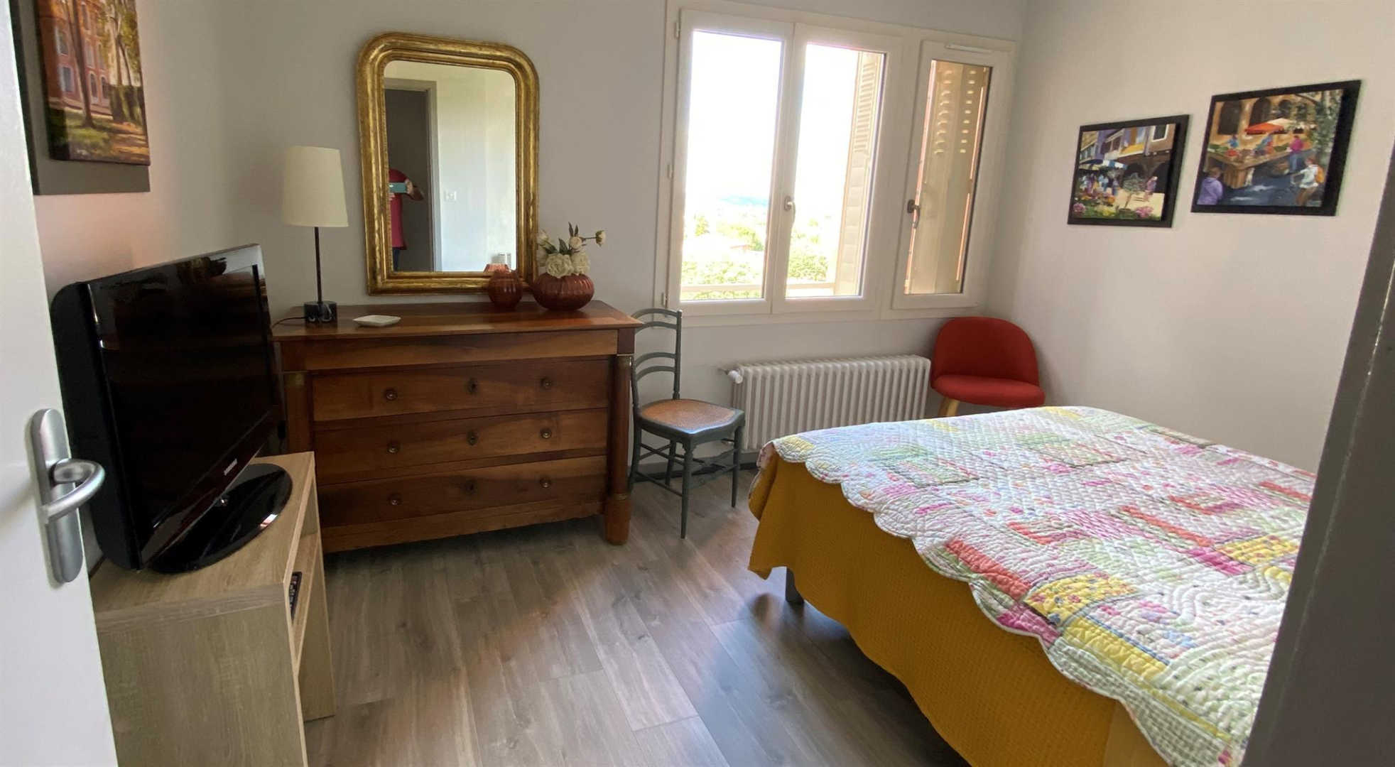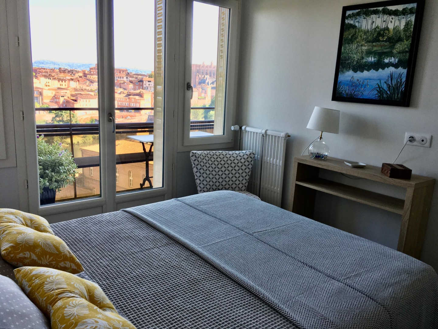 Deux chambres, l’une donnant côté Tarn et ville avec balcon, l’autre sur les coteaux albigeois. Salle d’eau avec douche à l’italienne, wc indépendant.