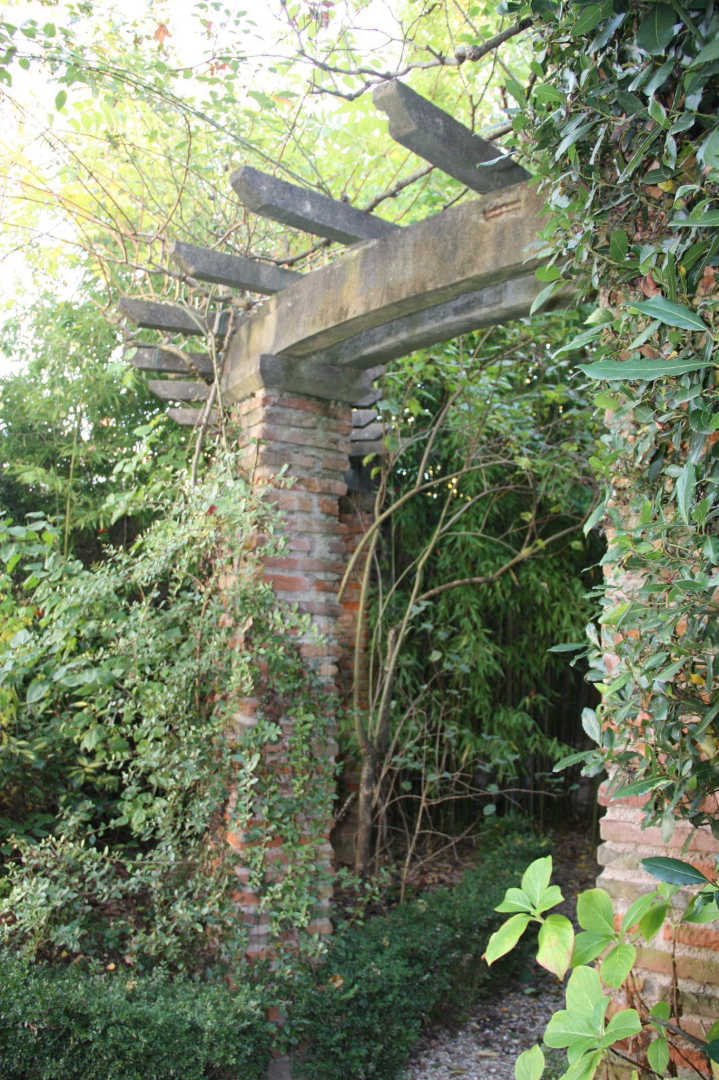 Le jardin, insoupçonné, se découvre derrière la haute façade.
