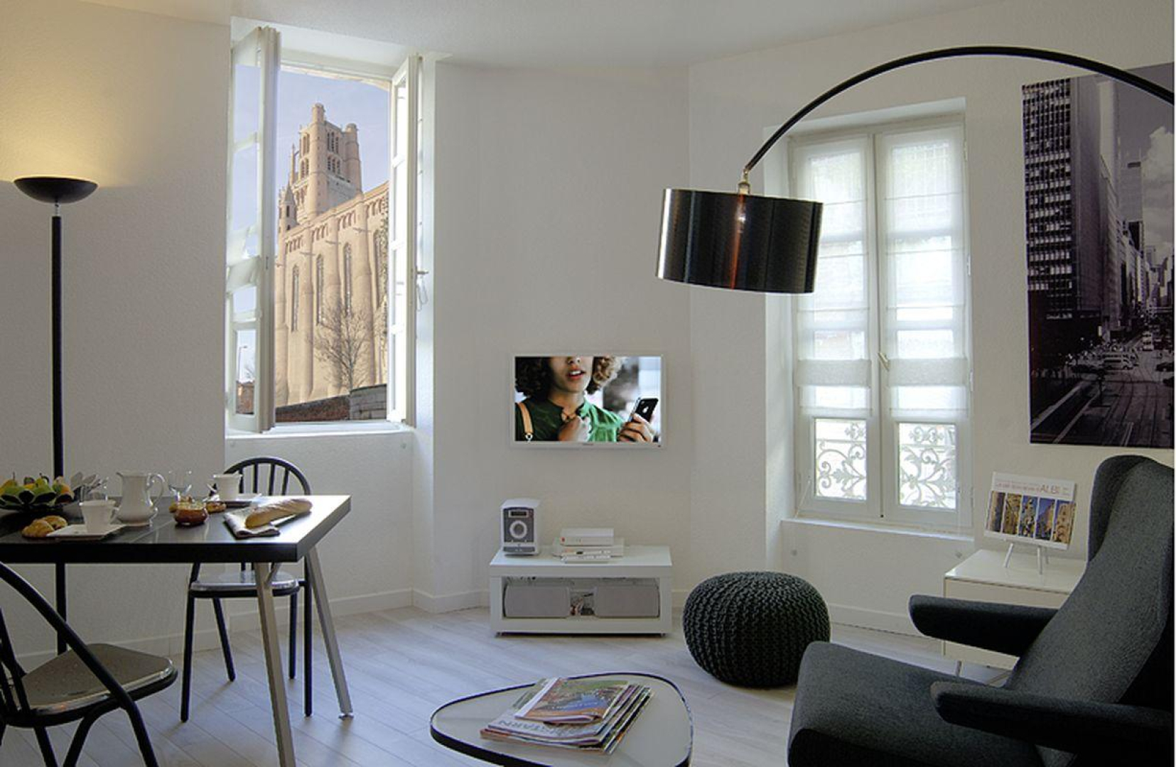 In heart of city, nice apartment (non smoking), completely redone to nine. Located on the first floor of an old building, it is very bright and equipped with contemporary furniture. Living room, kitchen fully equipped, bedroom (bed double 160X200cm), office (Chair bed), shower room, wc. Internet connection (Wifi). Sheets and towels are provided, beds are made on arrival. The service cleaning at end of stay is also offered. If you want to stay in the heart of the Episcopal city, classified world heritage of UNESCO, if you want to shops, restaurants and museums within walking distance in less than a minute, and if of course you want to one of the most beautiful views which either on the Cathedral in the morning at breakfast, from the living room or kitchen, it’s here to come. Sainte-Cécile dominates this picturesque neighborhood with narrow streets, named Viel Alby. You can even come by car or motorcycle, a garage is at your disposal, as well as two bicycles to move freely in Albi the red.