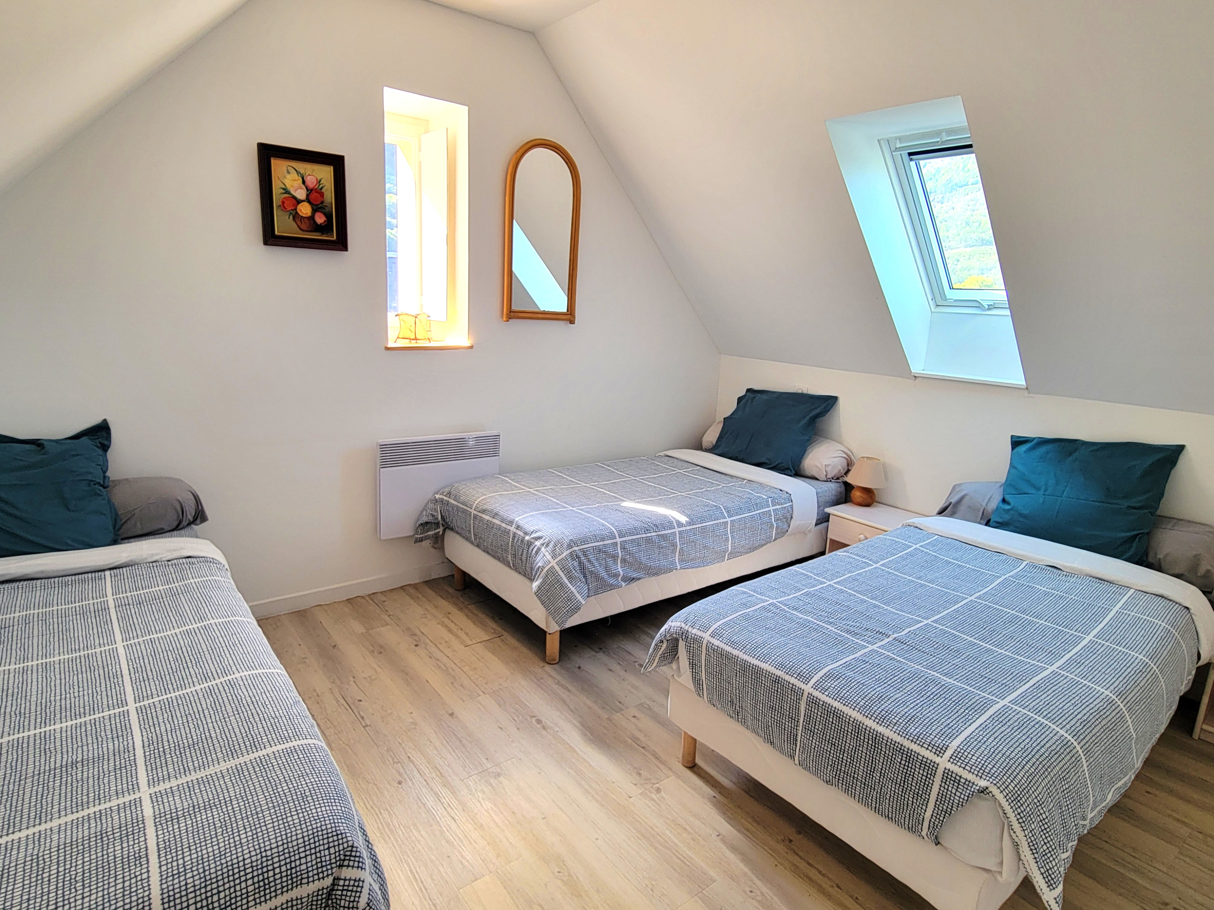 – Two double bedrooms and one bedroom with three single beds.