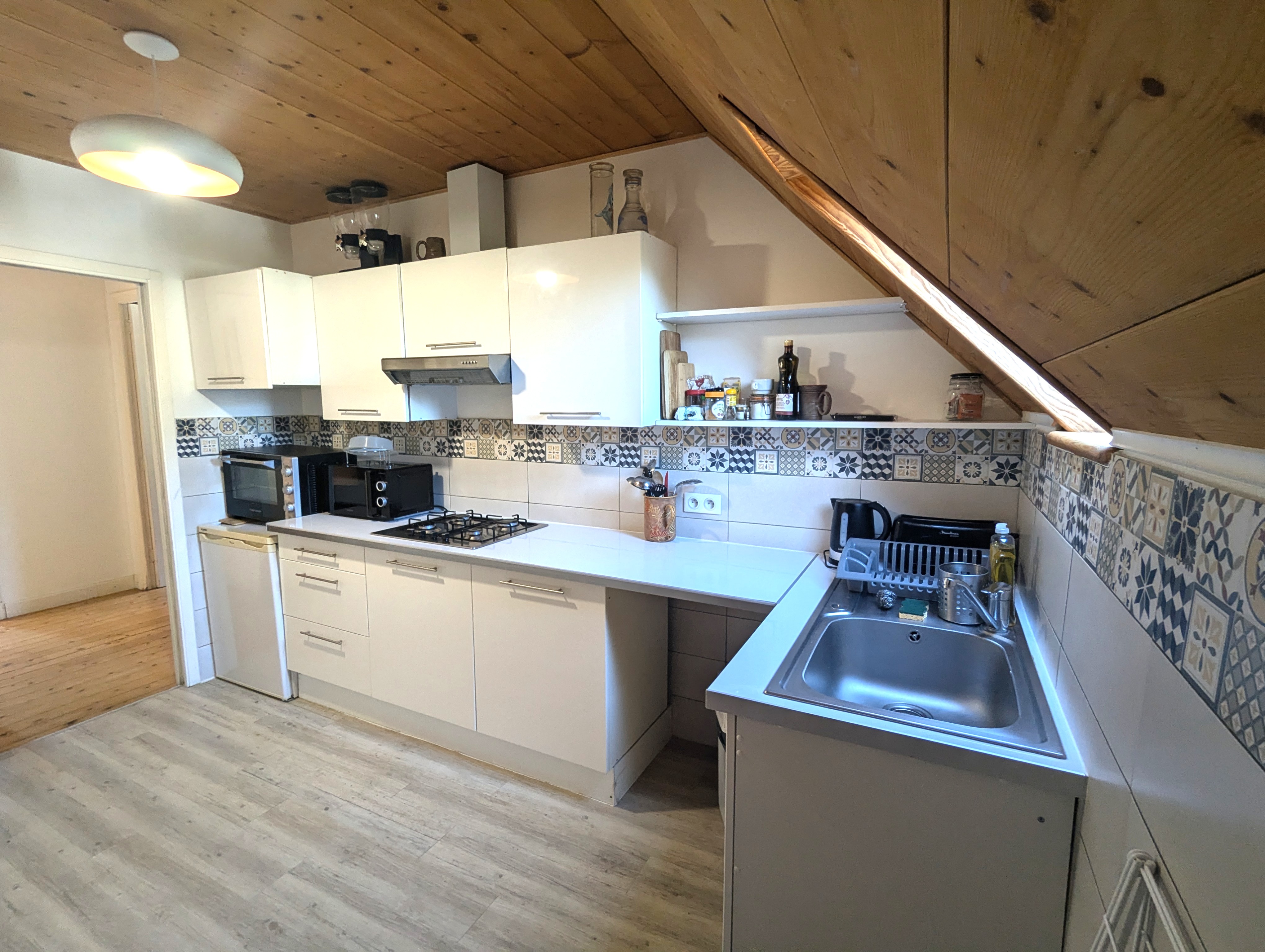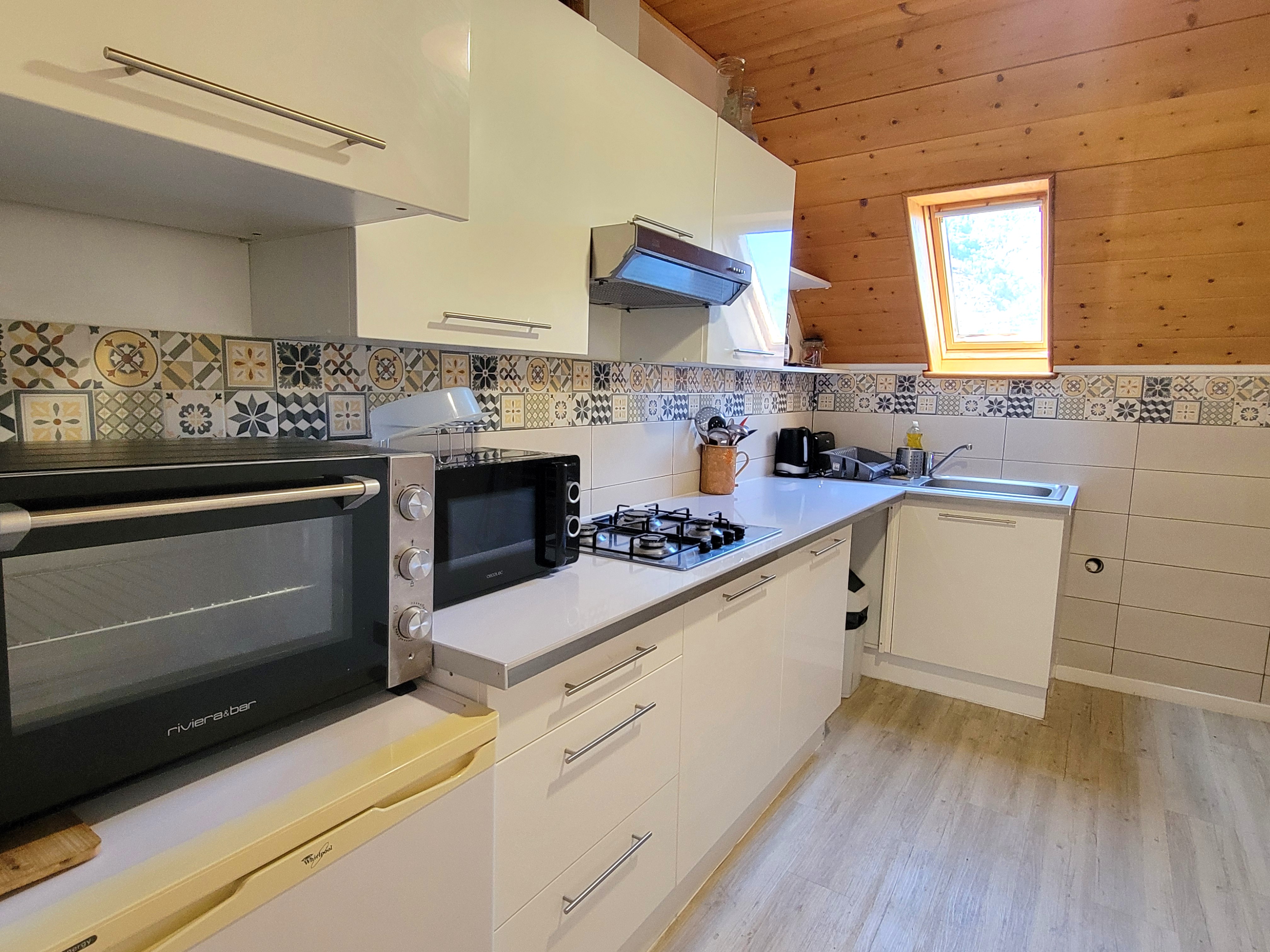 Fitted kitchen (washing machine, oven, microwave, gas), shower room and separate WC.