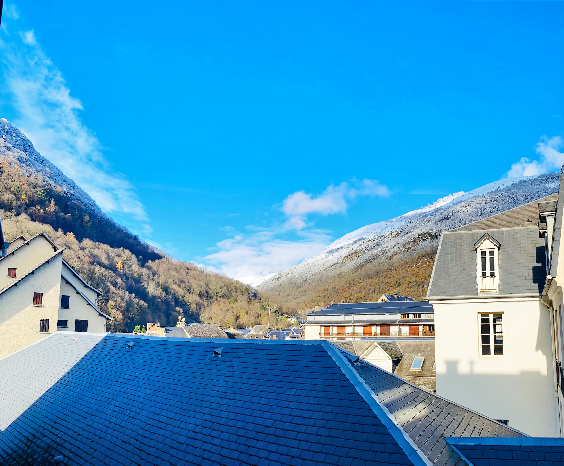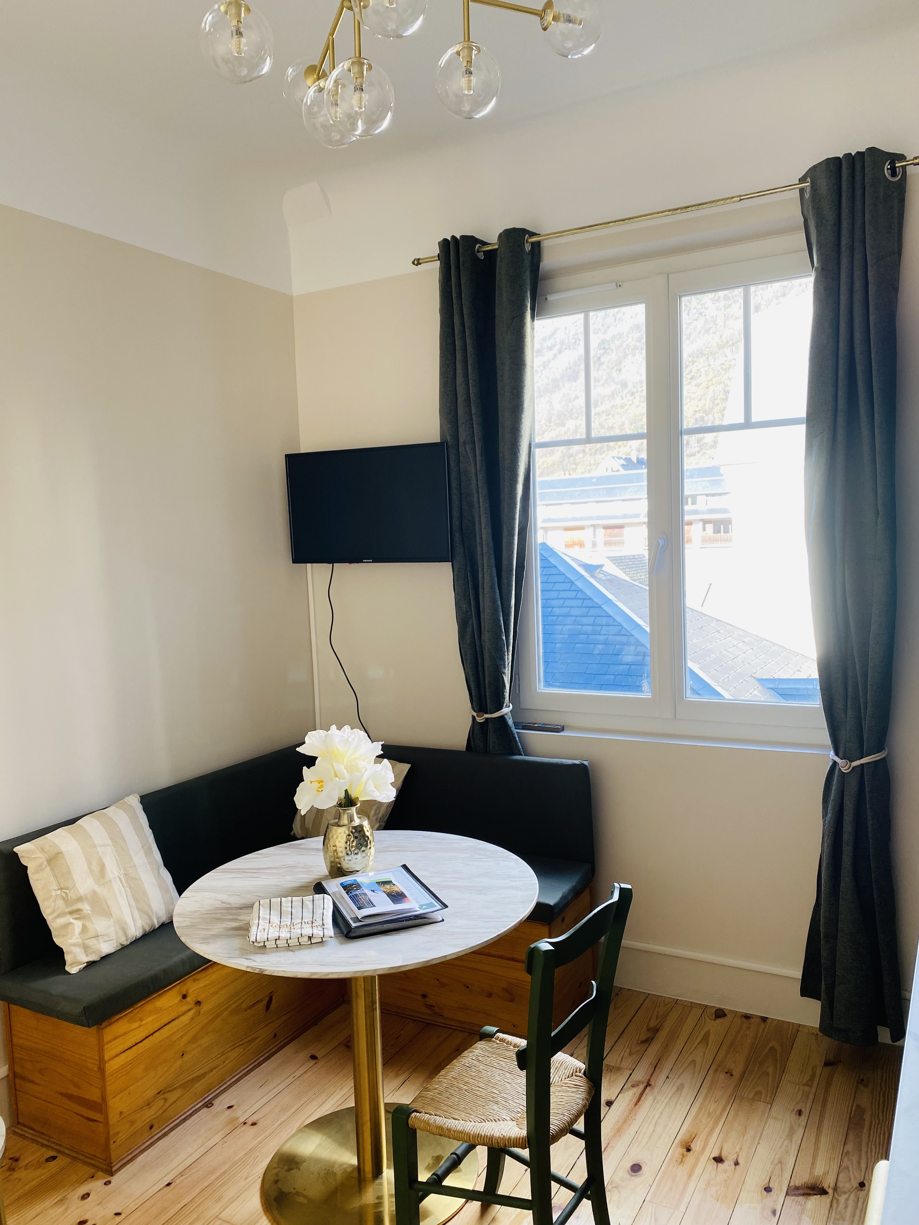 Charming, fully renovated T2 apartment on the 3rd floor with lift of a former town house, with mountain views, a stone’s throw from the cable car and thermal baths, with fully equipped kitchen, living room with sofa bed, comfortable bedroom, secure ski/bike room, free WiFi and baby cot available.