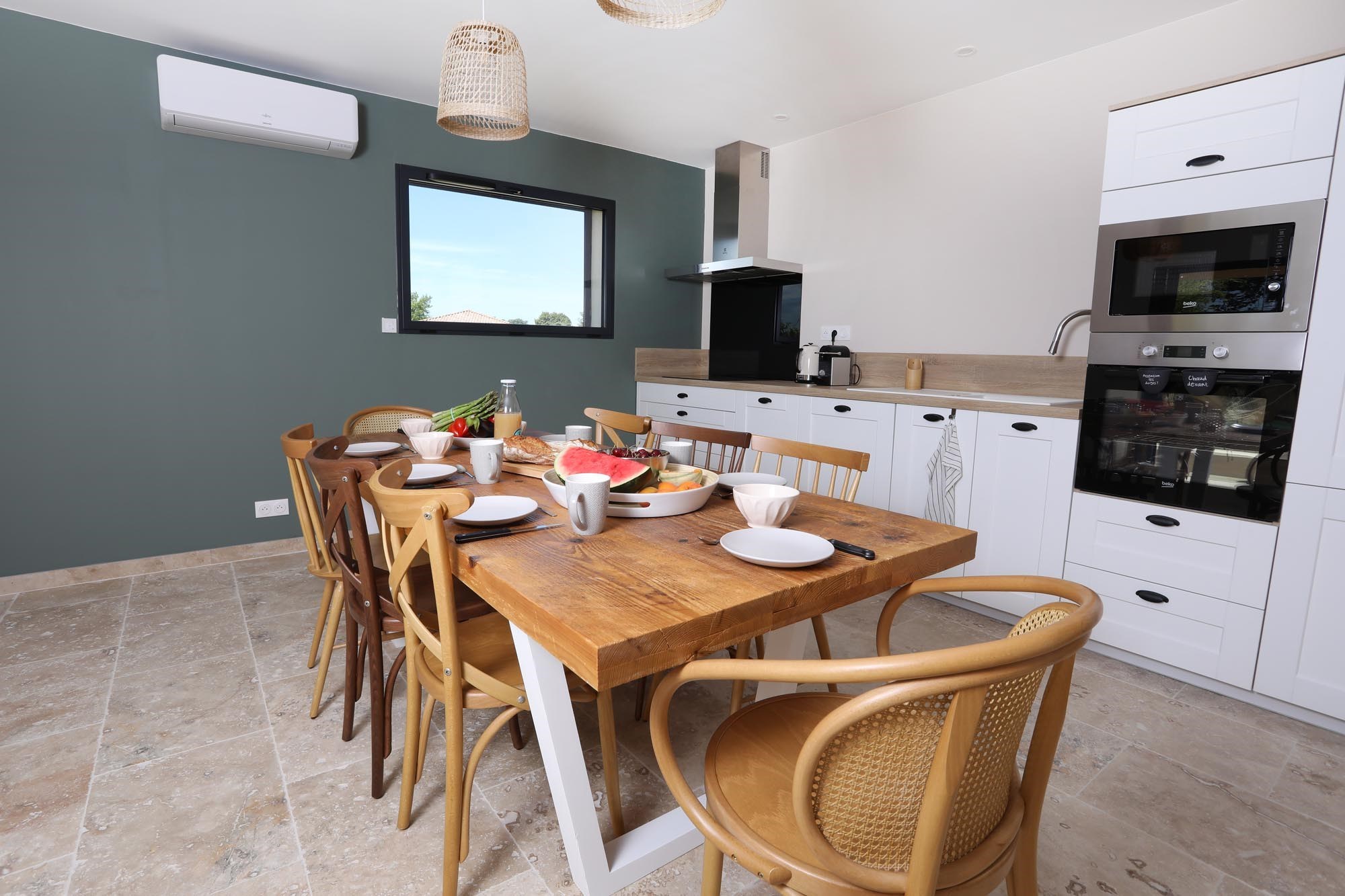 A spacious and bright gîte with the evocative name ‘Le Chêne’ (the oak tree). On arrival, you will immediately feel at ease in its pleasant 38 m² living room with open kitchen and view of the vineyards.