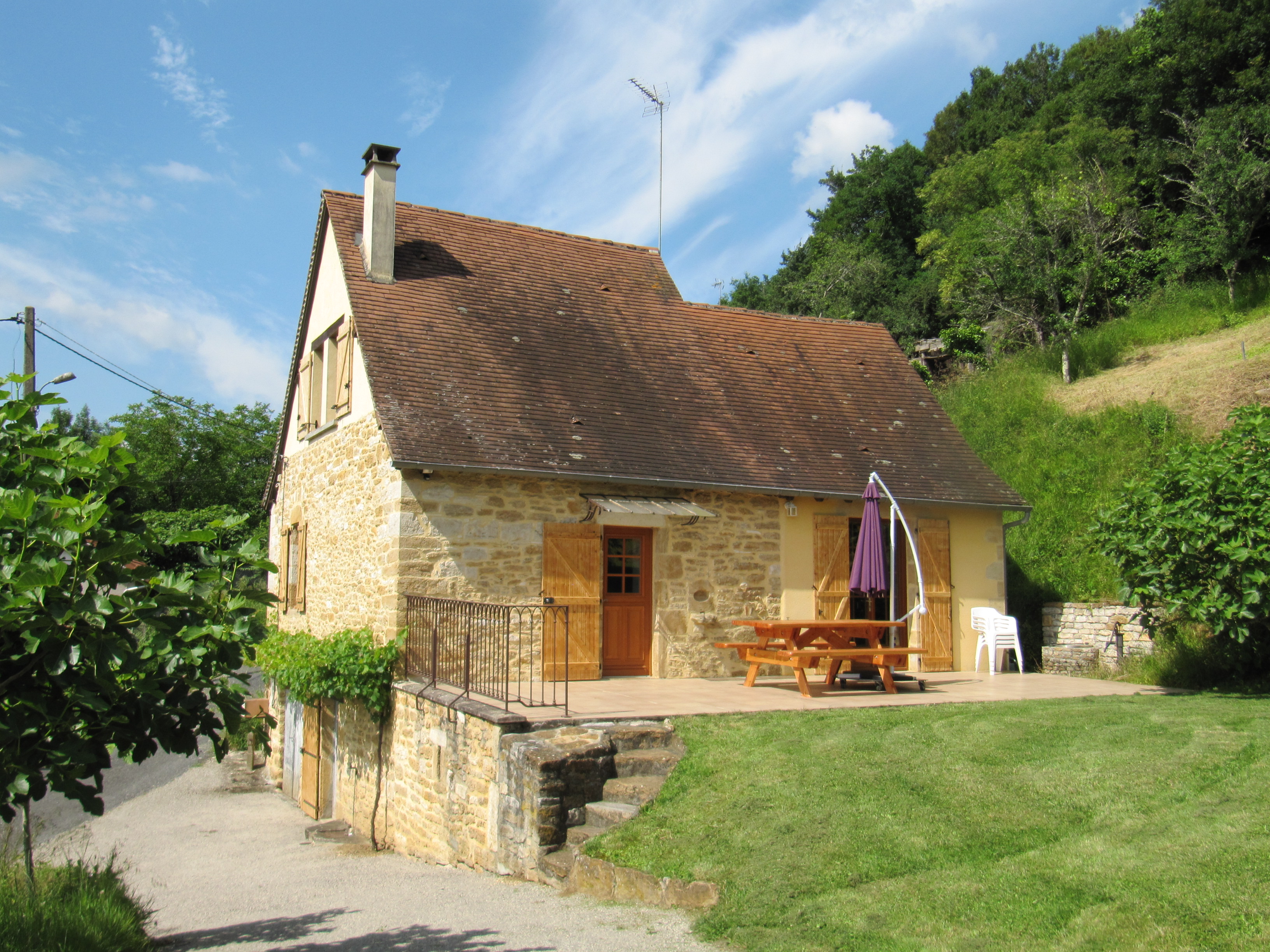 Gîte de vacances indépendant en Vallée de Dordogne. Maison en pierre de pays entièrement restaurée sur 2 niveaux Rivière Dordogne à 1,5km au pont suspendu “Miret” dans un site naturel remarquable. Séjour et cuisine donnant sur terrasse de 35m2 plein sud devant terrain arboré de 3500m2 non clos Situé à mi coteau boisé du Puy d’Issolud ancien oppidum gaulois et site historique qui vit en -51 de notre ère la dernière bataille de la conquête de la Gaule par Jules César. Point de vue remarquable et privé +80m d’altitude au dessus de la maison sur 30 kms de vallée de Dordogne. Possibilité de pique nique avec table forestière sur place ( voir photo) 6 des plus beaux villages de France à proximité entre 8 et 23 kms Tous commerces à Vayrac : 3kms