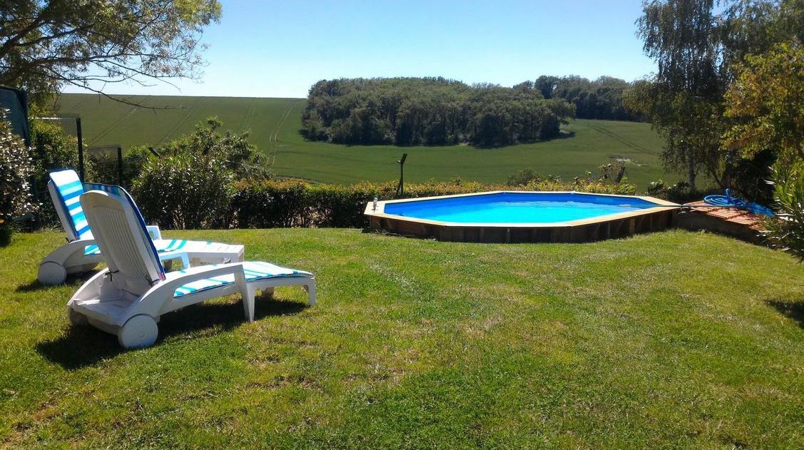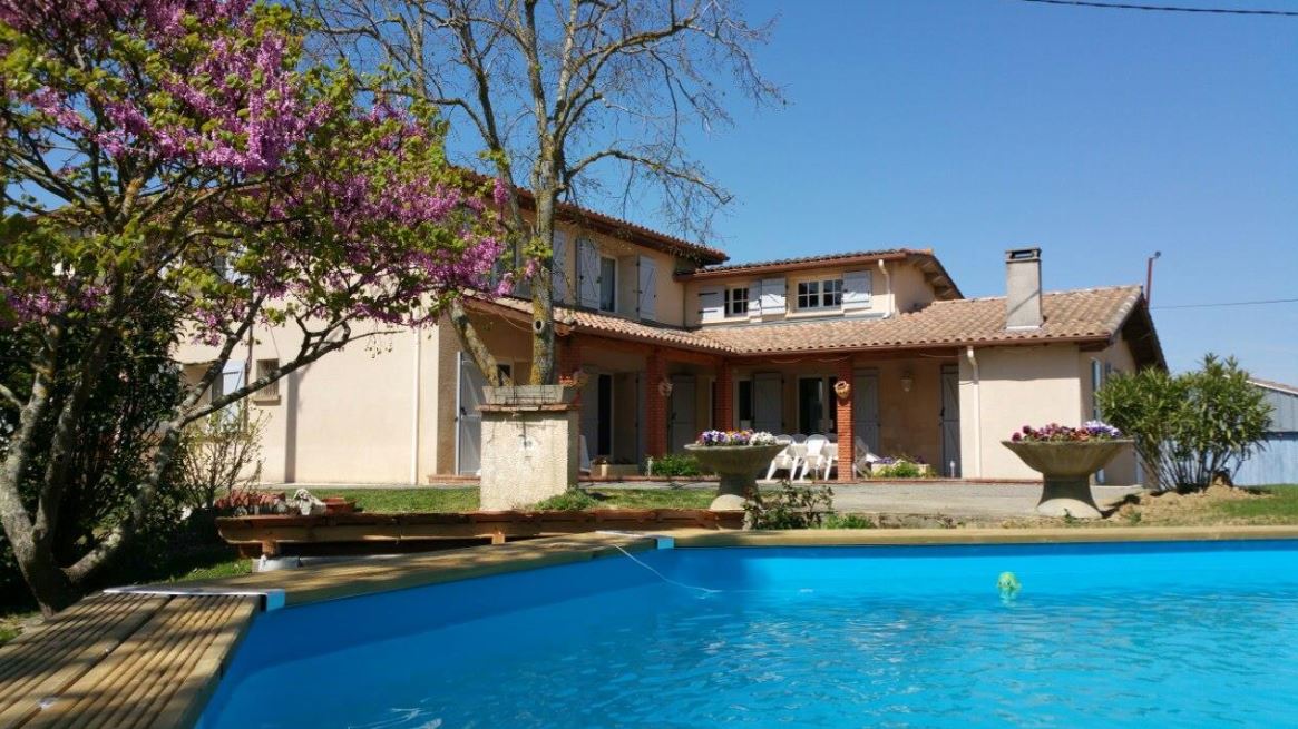 Auradé à 2 km. A la campagne, maison de ferme restaurée (180m² – rdc + étage) ouvrant sur une terrasse couverte, avec espace vert et cour (500m²) réservés: piscine hors sol privative (6.1x4m – prof: 1m30) à votre disposition. Mitoyenne à l’habitation des propriétaires (sans vis à vis), sur une exploitation céréalière de 50ha, vous profiterez de la vue sur les champs et des nombreuses possibilités de ballades sur la propriété et du lac à 200m.
