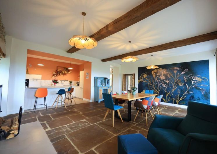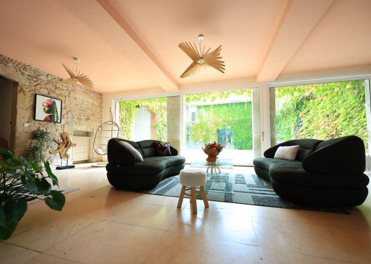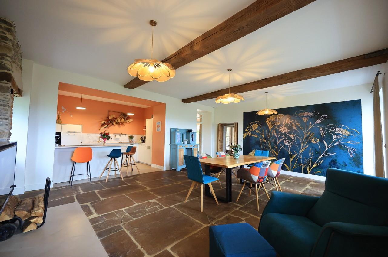 Built in 1650 and fully renovated, this house has retained its authenticity while adapting to modern comforts. It can accommodate up to 10 people in a warm, traditional yet contemporary atmosphere. On the ground floor, you will find a fully equipped kitchen (dishwasher, induction hob, combination oven/microwave, refrigerator), a welcoming dining room with a large table, and two comfortable living rooms with televisions, sofas, and reading corners. A library is also available for relaxation.