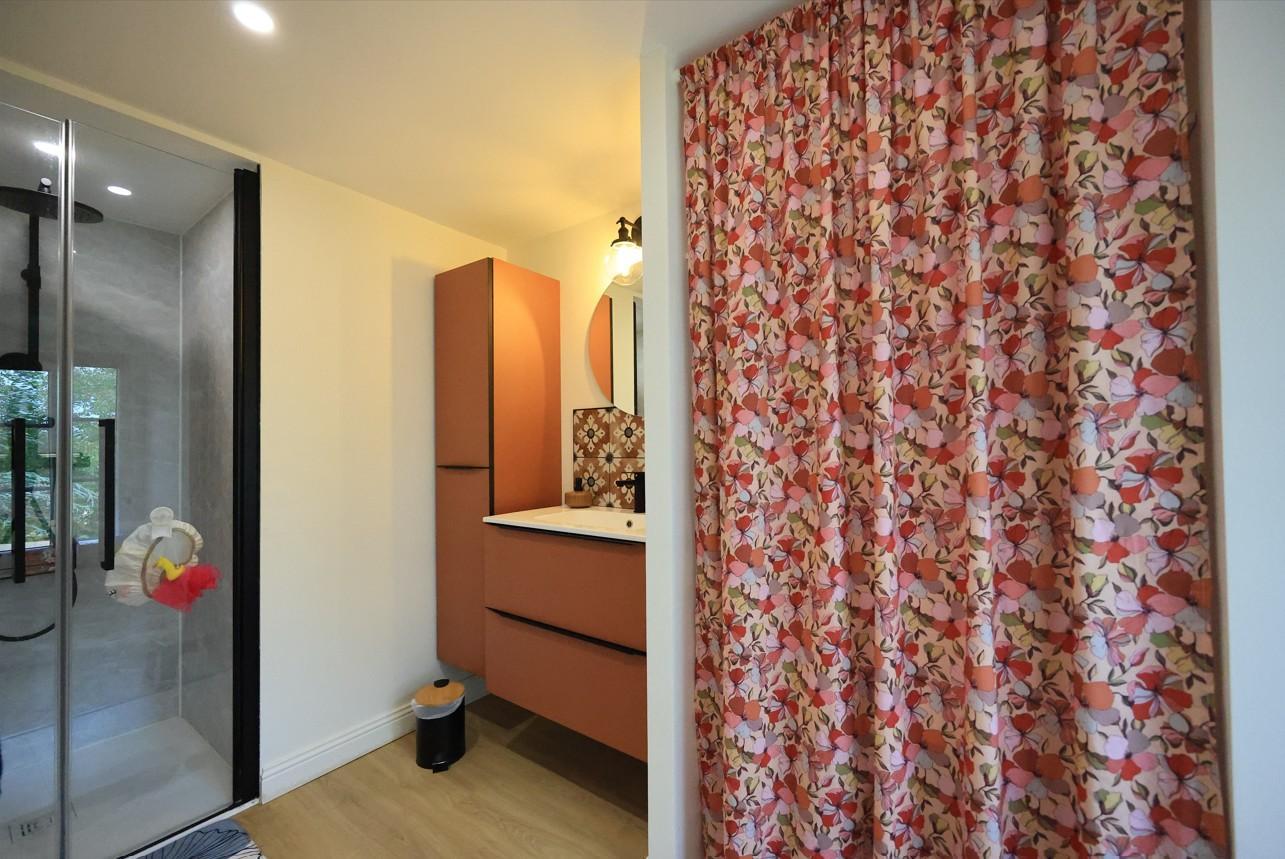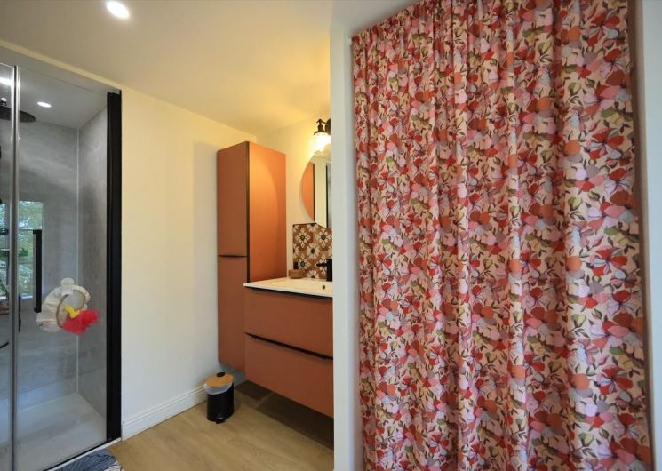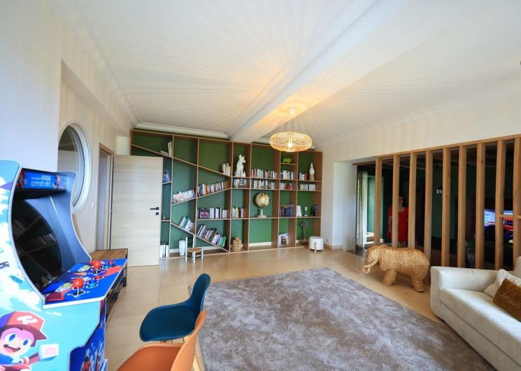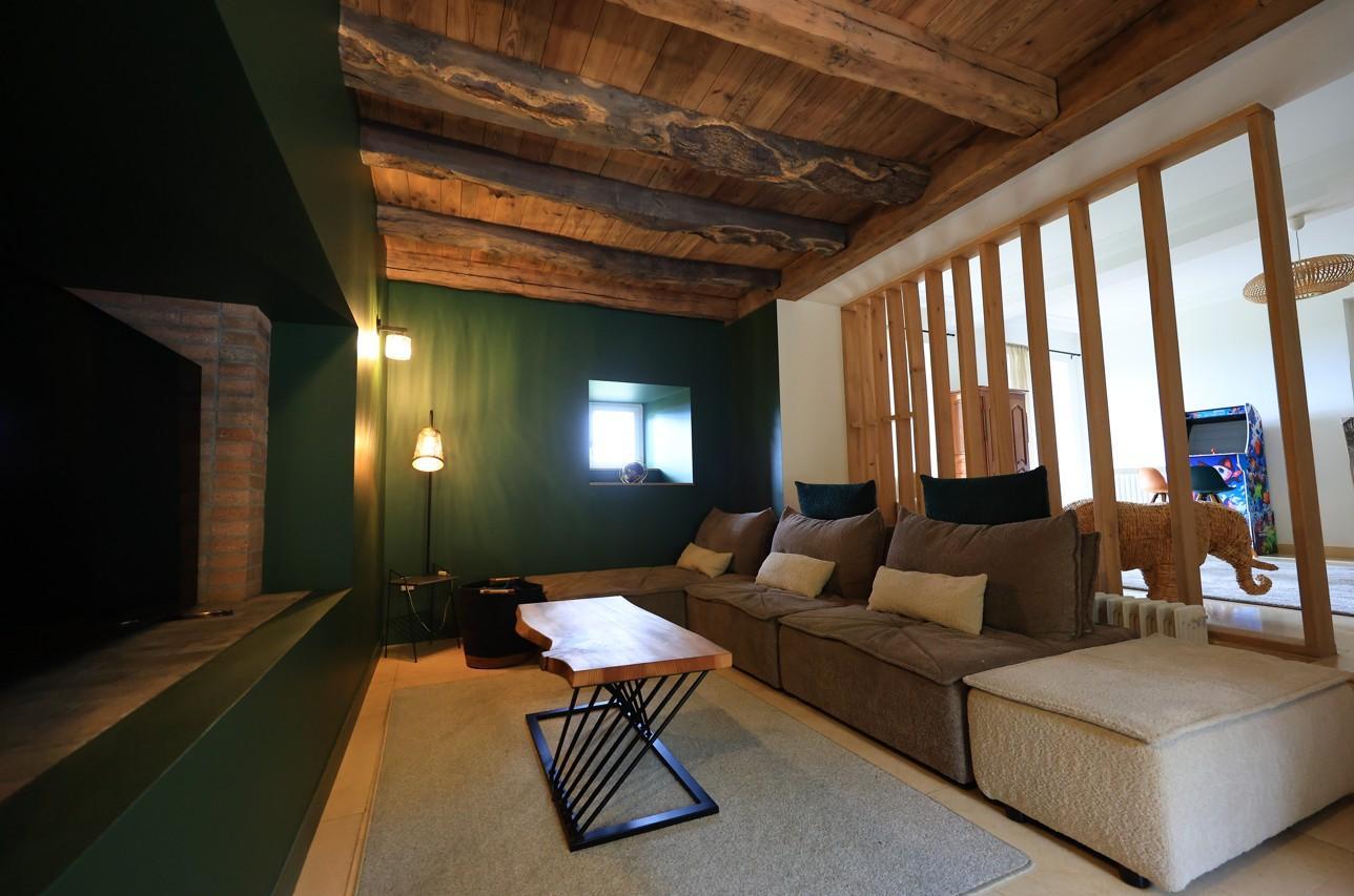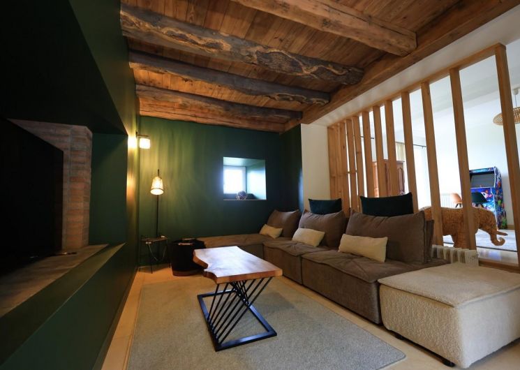 The large, enclosed, and wooded garden (6000 m²) and the orchard invite relaxation. You’ll make the most of summer with the private heated swimming pool (9×5 m, 1.50 m deep), nestled in the courtyard. For leisure, you’ll enjoy a foosball table, arcade game, library, swing set, and bicycles available for the whole family. The cottage also has private parking for 4 vehicles with an electric vehicle charging station.