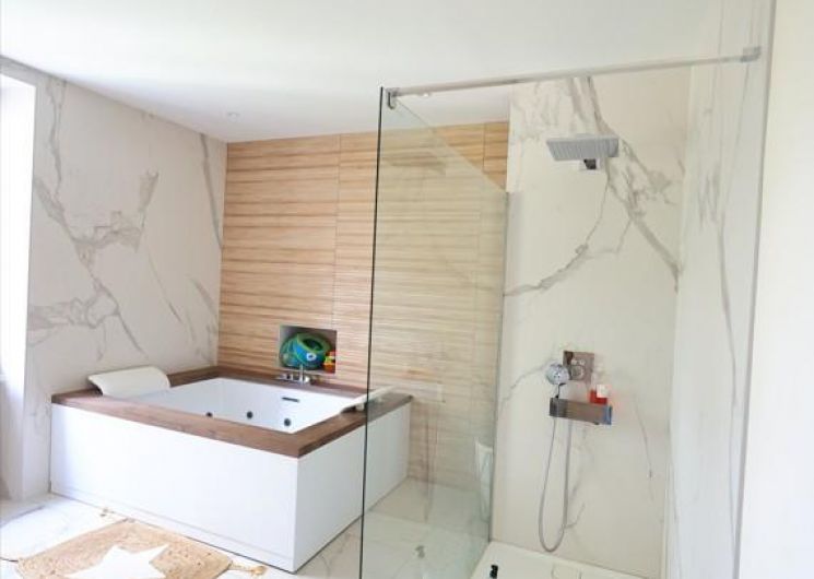 * Bedroom 1: King-size bed (180×200 cm), private bathroom (shower with jets, double vanity)