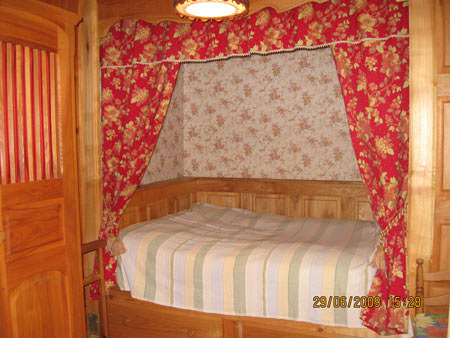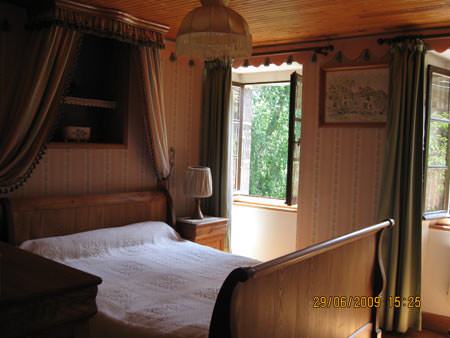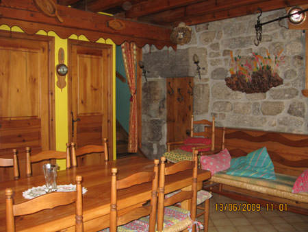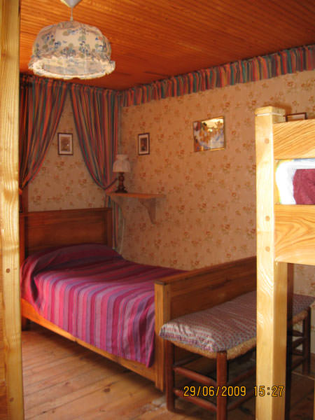 In this shaded and lit area where the stream runs stands an old 1th century mill. Its rustic interior is typical of the region (wood, granite walls and fabrics) and creates a warm and cosy atmosphere. Living room, kitchen area, 3 bedrooms (3 x single beds, 2 x double beds, 1 x cot), towels provided free of charge, bathroom, 2 toilets, washing machine, dryer, dishwasher, freezer, microwave, TV, metered telephone, fireplace (logs provided free of charge) and electric heating (depending on usage). Garage, barbecue, garden furniture, sun loungers and kid’s games. Weekend: 25 EUR/night/person. Rental period: Saturday 4pm – Saturday 10am.