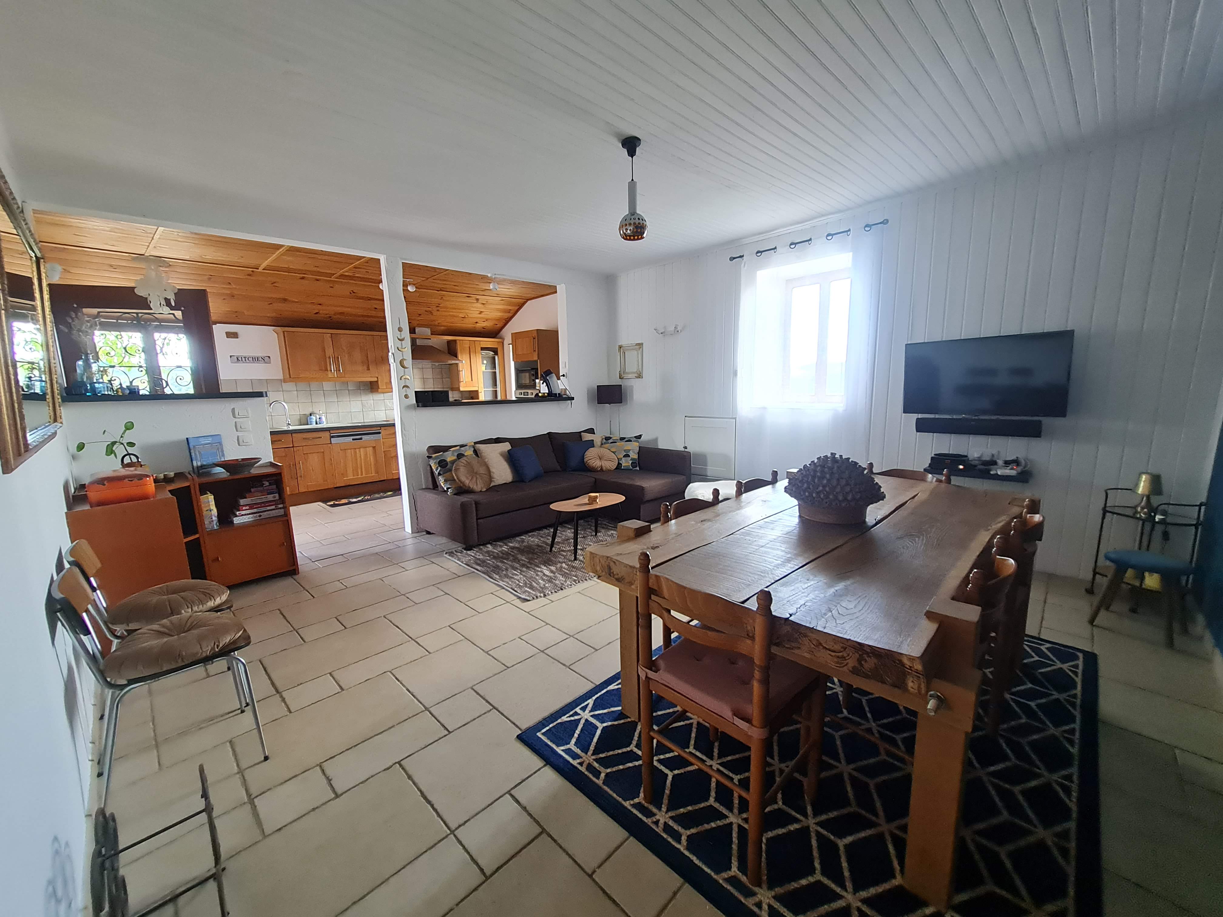 Cette ancien corps de ferme a été récemment restauré. A l’intérieur tout est accessible de plain pied. Le gîte comprend : une cuisine ouverte sur la salle à manger / salon (canapé, TV, accès internet wifi). Un couloir dessert la salle de bain (baignoire et douche, sèche-serviette), 1 chambre (1 lit 180), 1 chambre (1 lit 160), 1 chambre (2 lits 90 superposés, 1 WC, 1 buanderie (lave-linge, sèche-linge).