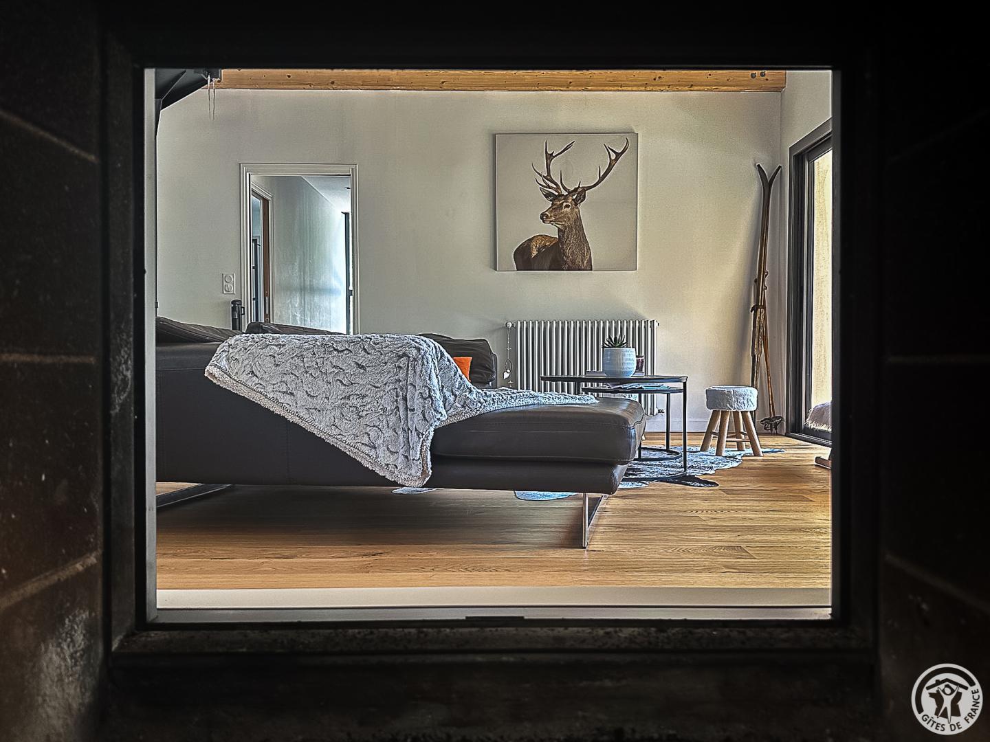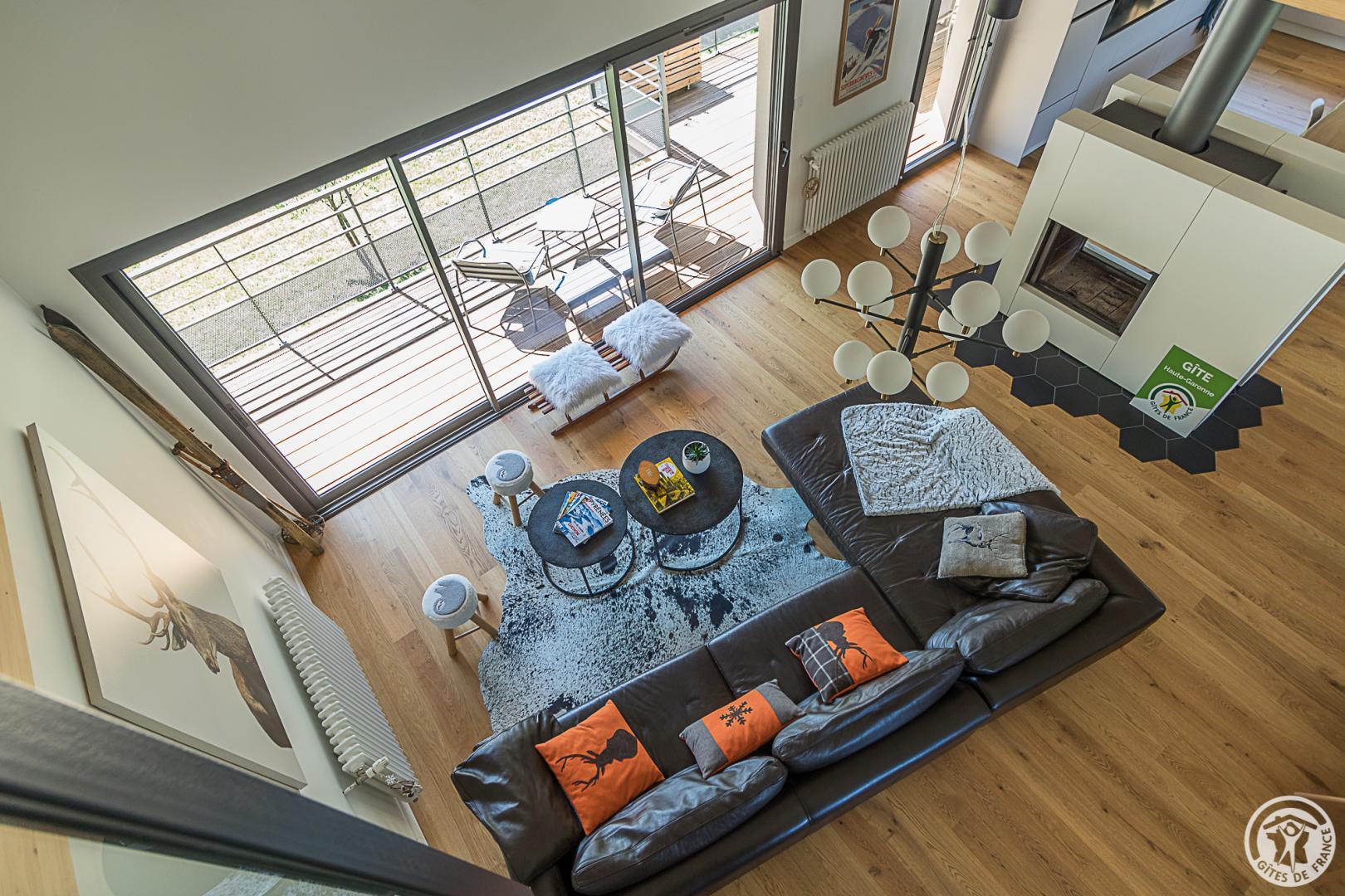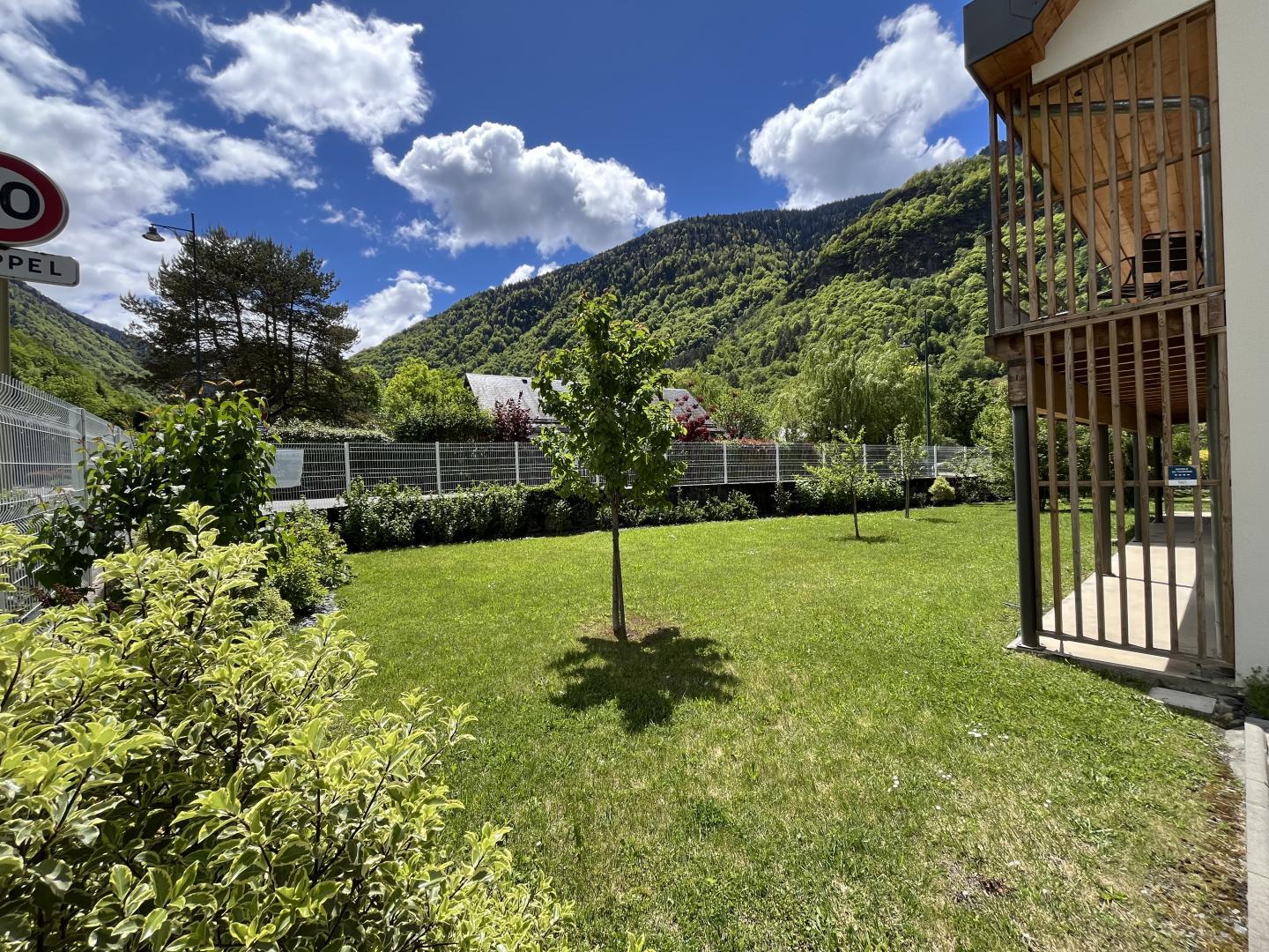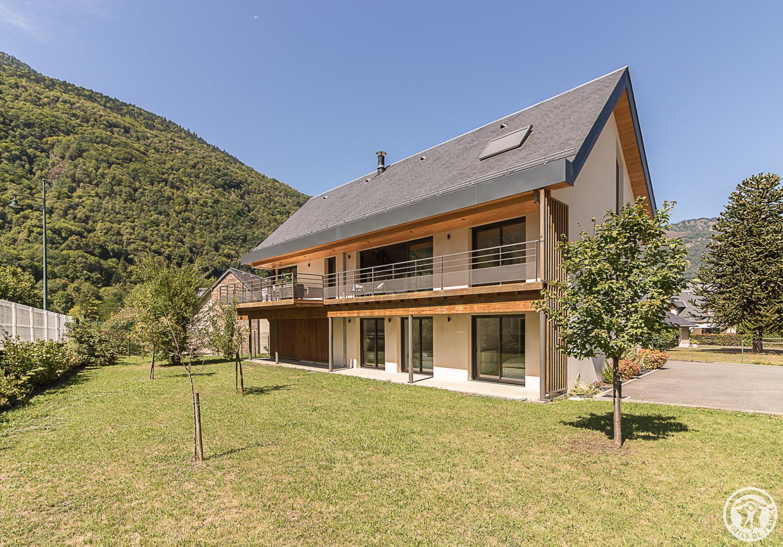 The gîte is set in a contemporary villa facing south towards the peaks, in a quiet, residential area. The 700m² exterior features a grassed garden planted with fruit trees, a courtyard and a covered carport.