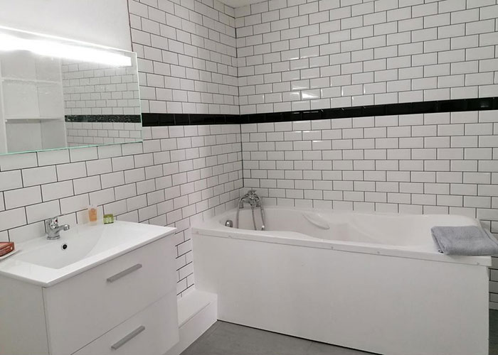La maison dispose de deux chambres tout confort avec salle d’eau privative, climatisation, espace tisannerie/café, et d’un salon commun avec cuisine équipée, TV, wifi et bar. L’une des chambres est accessible via la salle de sport.