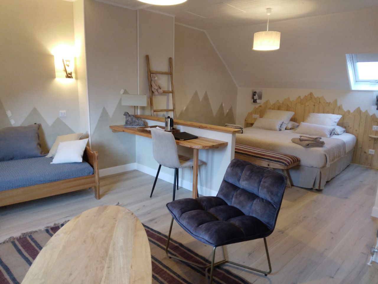 The house which opens on the square of the church St Julien de Sazos knew to keep the charm of the big volumes with the comfort of today. Cocooning decoration, natural materials, cosy atmosphere… everything is there!