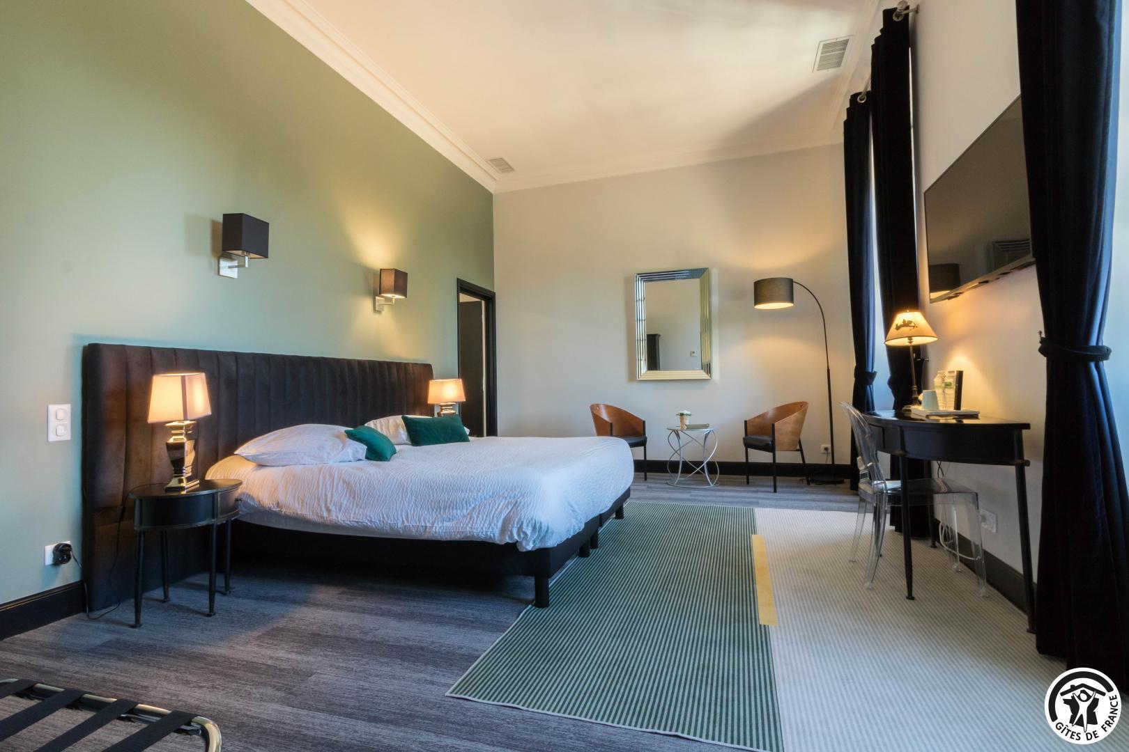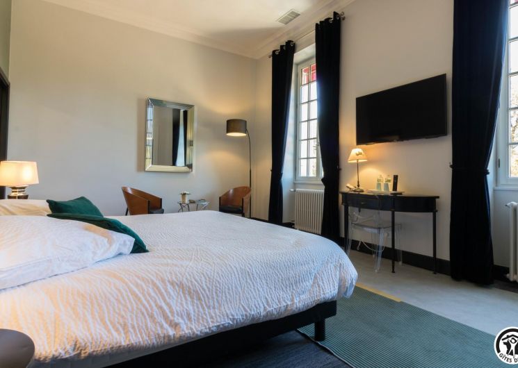 The 18th-century residence has 5 guest rooms with refined, personalised decor (lift between the ground and ground floors). All have a view over the park, TV and Wi-Fi internet access, reversible air conditioning, private bathroom with walk-in shower and separate WC. The ground-floor bathroom also has a bath. The entrance hall features a pool table and an Arcade console with thousands of video games. The dining room and lounge will be shared with your guests.