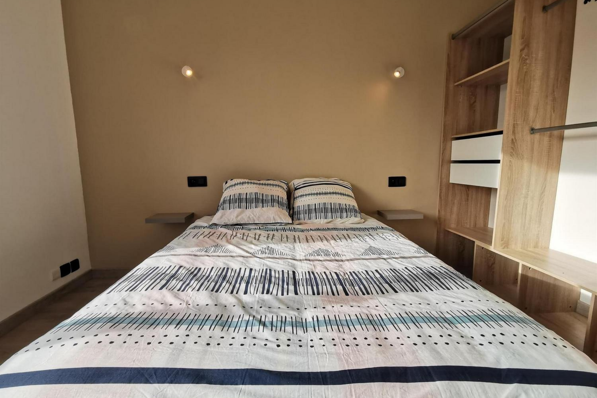 Elle est composée d’une entrée avec un wc indépendant, d’un cellier avec un lave-linge, un réfrigérateur-congélateur. La pièce de vie lumineuse est équipée d’un coin salon avec tv ainsi que d’un coin salle à manger. La cuisine équipée est ouverte sur le séjour. De grandes baies vitrées vous invitent à profiter de l’extérieur. Le coin nuit se compose de 3 chambres avec chacune un lit 140 et un dressing ouvert. La salle d’eau est équipée d’une douche et d’une vasque avec du rangement.
