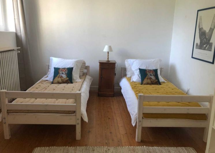 – chambre Voyages, deux lits 90×200 jumelables en un lit 180×200