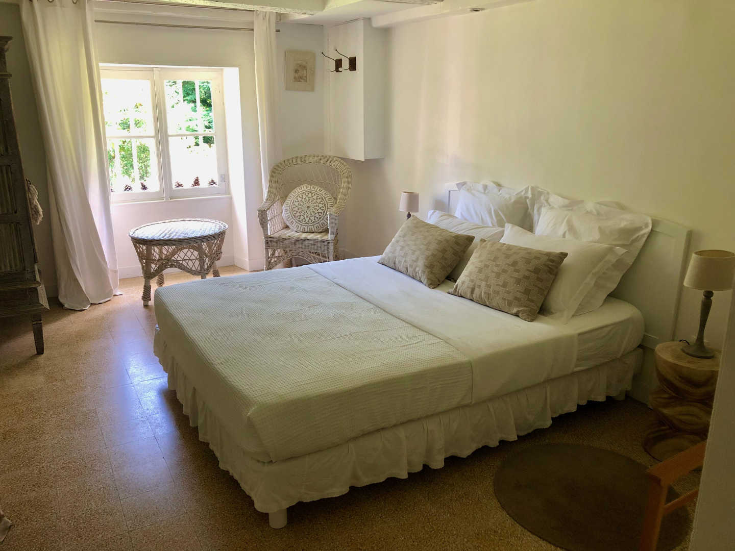 A ce niveau se trouve la chambre Bohême, lit 160×200, salle de bain privative (baignoire, vasque, WC, lave-linge) et un WC indépendant
