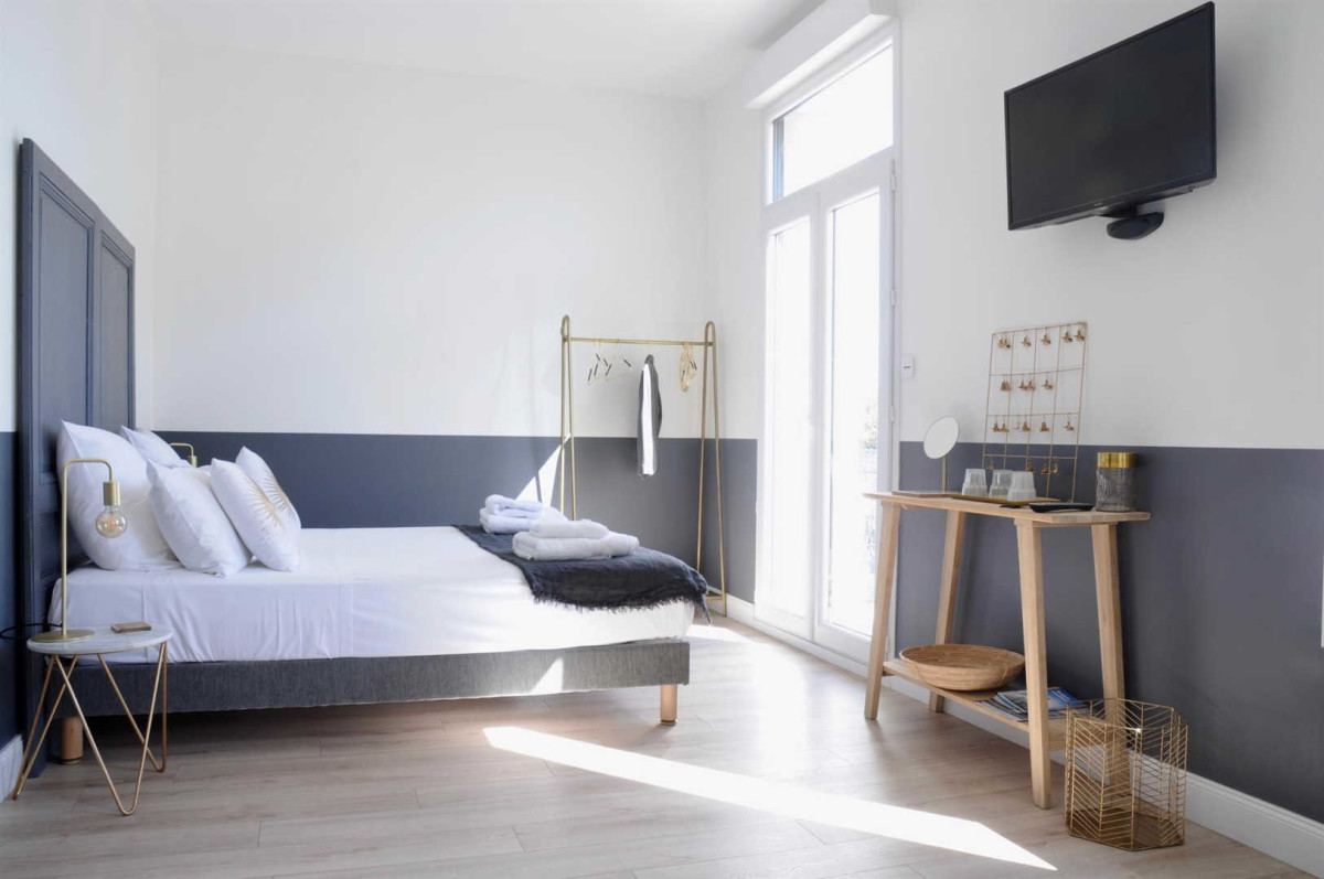 Enjoy an unforgettable stay at our estate in Frontignan, located between land and sea, with ideal access to the Hérault, its beaches, towns like Sète and its terroir, as witnessed by the surrounding vineyards. Inside the house, you’ll find a very pleasant living room with tables and armchairs, where you’ll find a coffee machine, kettle, microwave, local products and drinks for sale, as well as board games and books for the whole family, provided by your hosts. Outside, you can enjoy the Hérault sunshine in a wooded park of over a hectare, where you can relax or enjoy breakfast on the guest room terrace. The Domaine de Selhac is also very committed to sustainable development, with a real desire to offer products from short circuits and to take an eco-responsible approach. The guest house offers 5 rooms ranging in size from 16m² to 21m², each with en-suite shower room and WC, TV and storage space. The estate also offers secure parking and bike storage. Tourist attractions: Frontignan is a charming town in the south of France, located between Sète (5kms) and Montpellier (25kms), close to Balaruc-les-Bains (7kms), France’s leading spa resort, and the Thau lagoon, famous for its oyster beds. There are several magnificent beaches along the coast, including the Plage des Aresquiers. Here you can enjoy water sports such as swimming, sailing and diving, as well as cultural activities, or discover the many walks between the sea and the lagoons. Frontignan is also famous for its Muscat, a sweet, aromatic wine whose vineyards and cellars you can visit and taste. Hérault, the cultural asset: Romanesque abbeys, heritage, Grands Sites de France, ar – The Classic room offers space and light for an invitation to calm and relaxation. Located on the first floor, with large windows and a balcony, this room offers a panoramic view of the estate’s exterior. The 21m² bedroom is equipped with a 160×200 cm bed and a 140×200 convertible bed, as well as a closet. Spacious and equipped with a large private shower and separate toilet, this room is ideal for couples looking for a little more space, or families with 2 children.