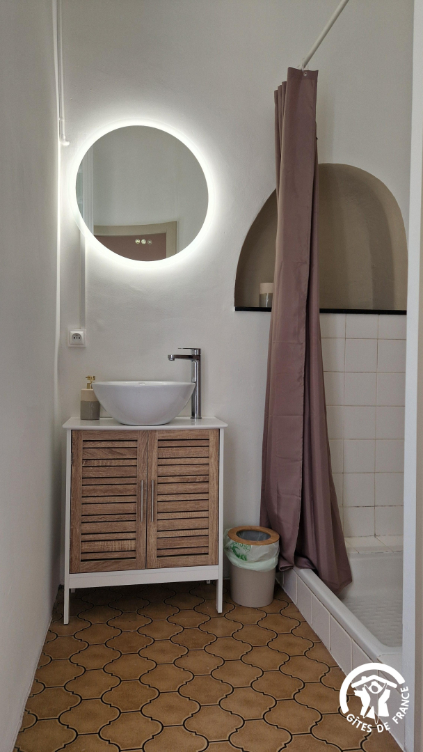 – une chambre avec lit double et salle d’eau privative (douche et vasque),