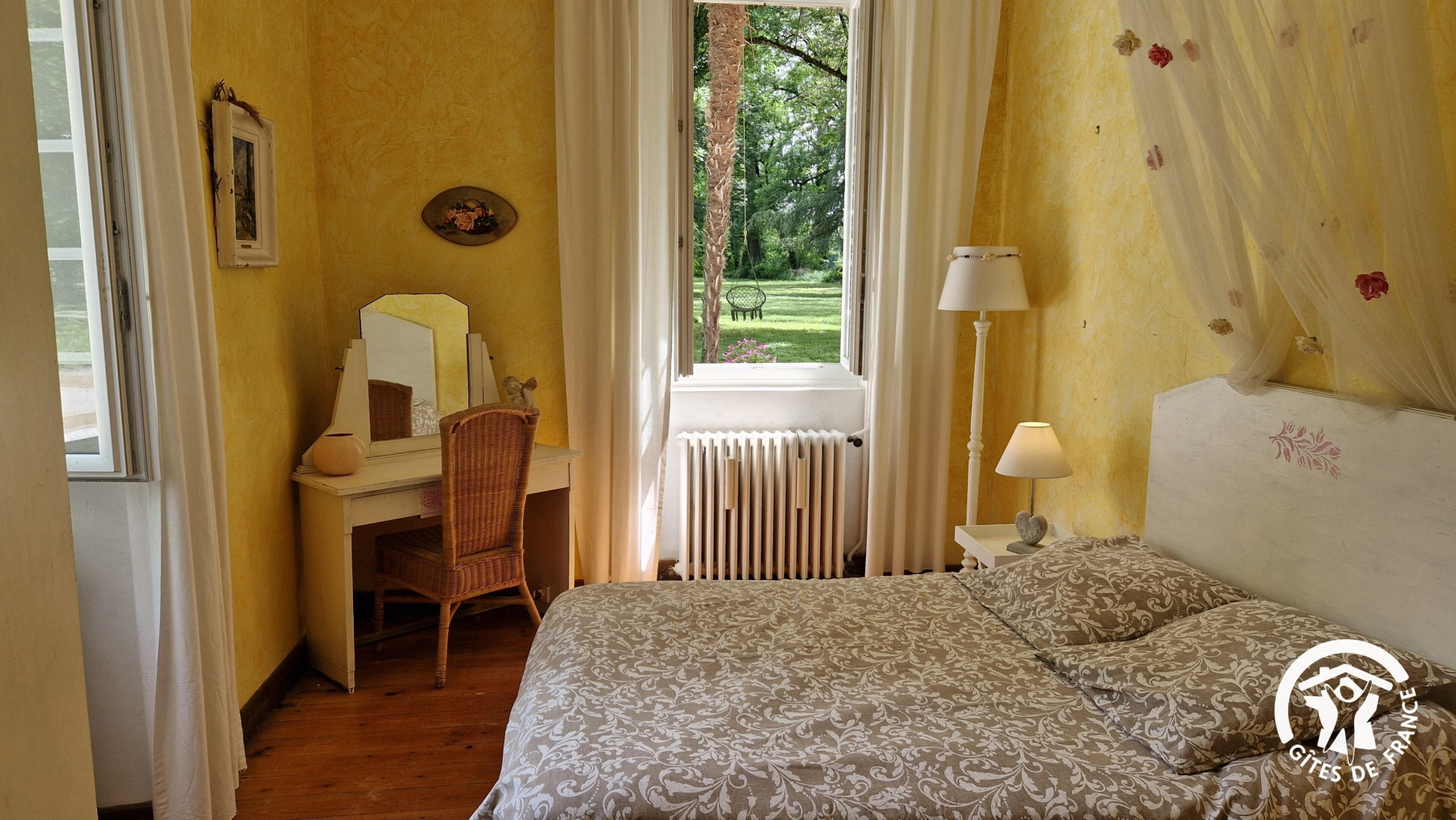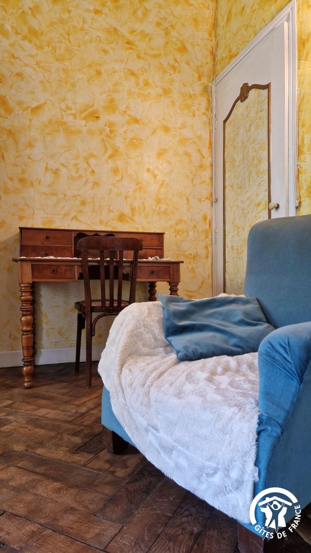 Maison mitoyenne aux propriétaires, sans vis-à-vis. Entrée indépendante pour accéder au gîte et jardin orienté sur le parc, tandis que les propriétaires ont une entrée de l’autre côté avec le centre équestre.