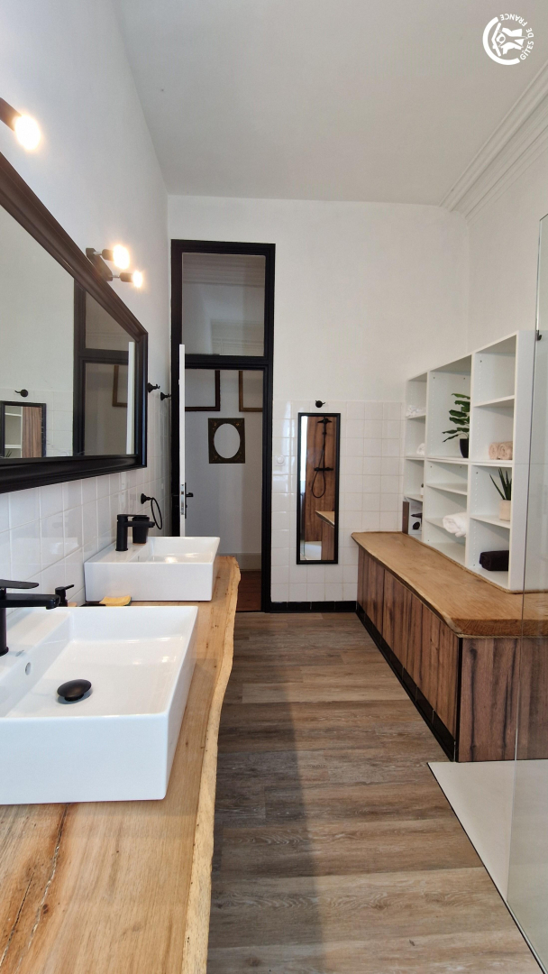 – salle d’eau avec douche à l’italienne et double vasque,