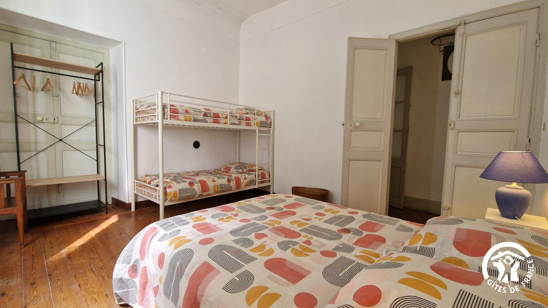 – une chambre pour les enfants avec un lit double en 140x190cm et un lit superposé avec deux couchages en 90x190cm,