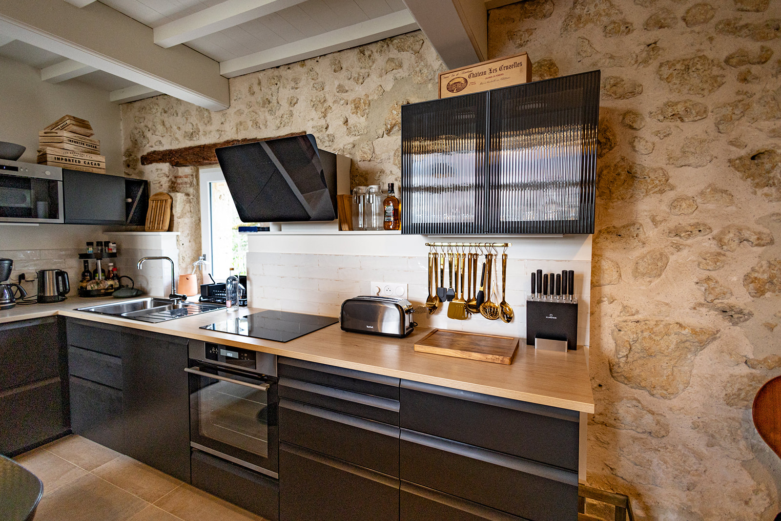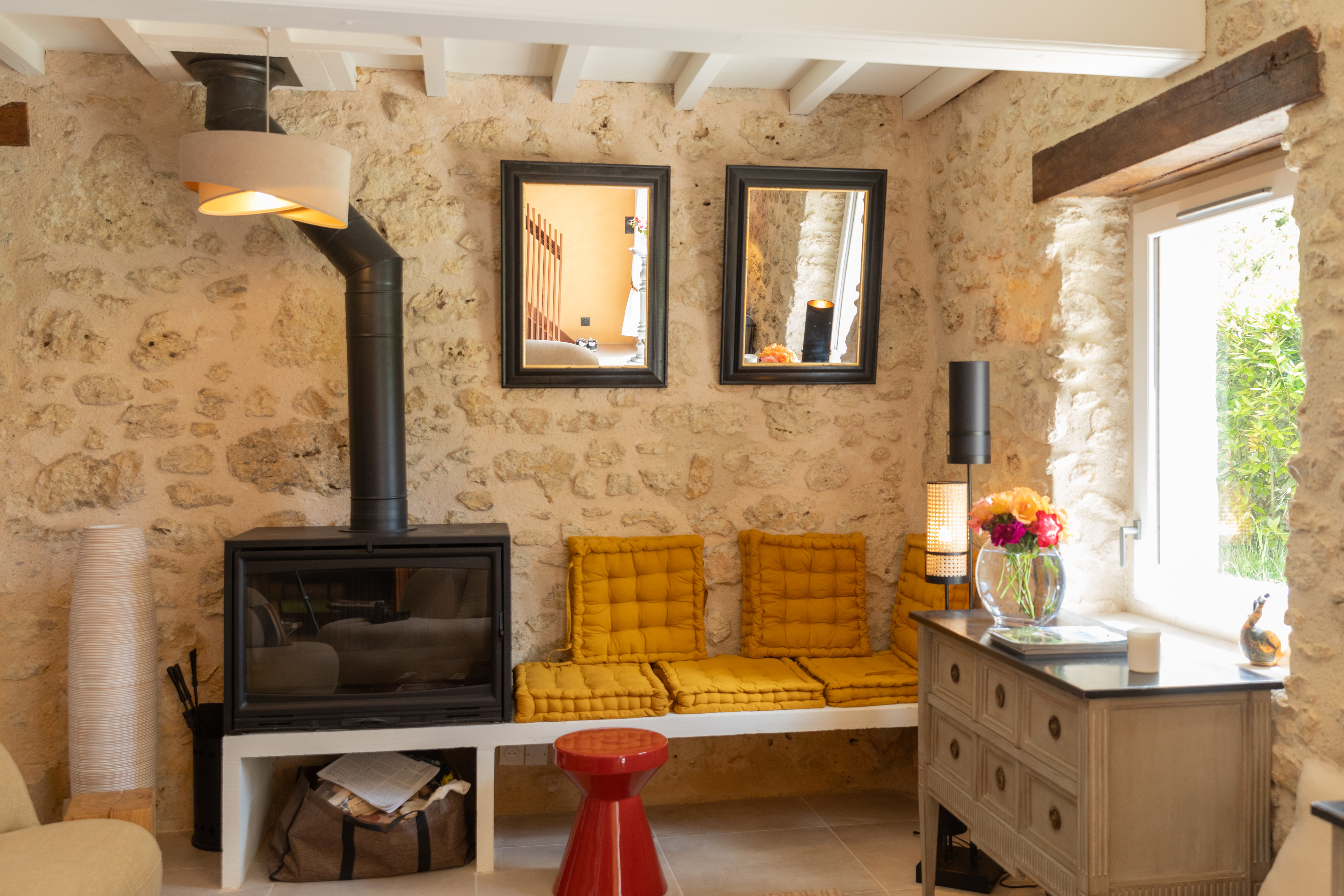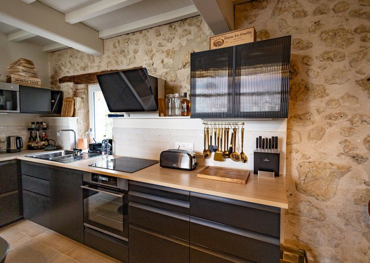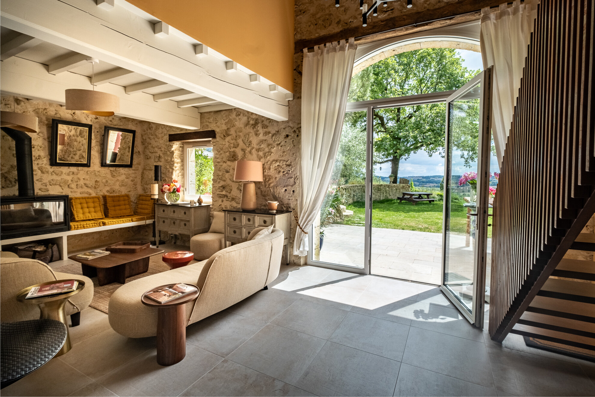 Le rez-de-chaussée se compose d’un espace salon et salle à manger qui offre une vue exceptionnelle sur la campagne et les Pyrénées. Celui-ci est équipé d’un poêle à bois qui réchauffera vos soirées les plus fraîches, espace ouvert sur la cuisine entièrement équipée ( four à air pulsé, machine à café, lave vaisselle etc … )