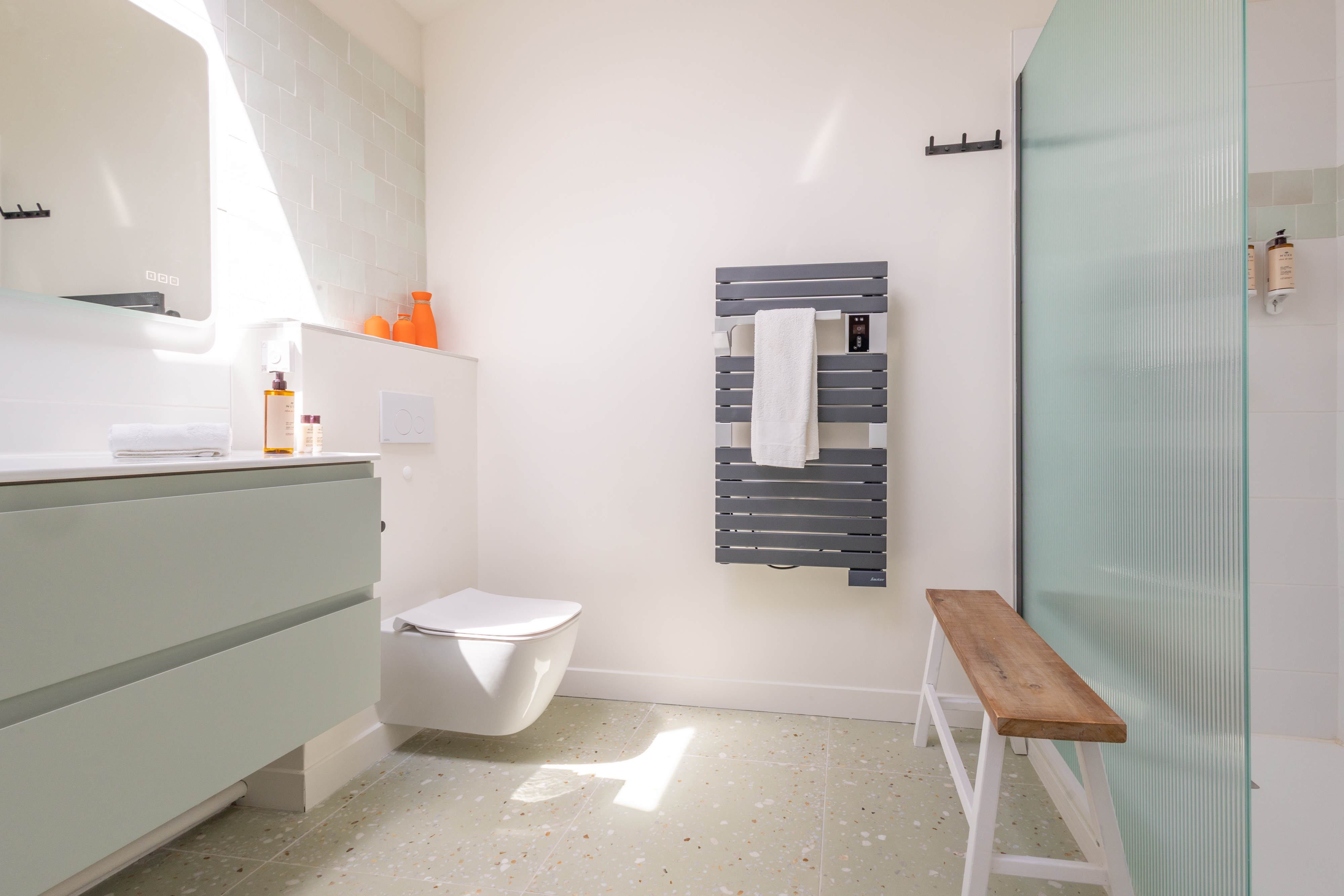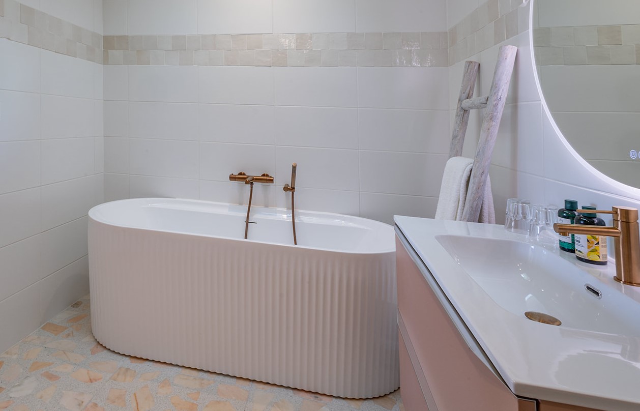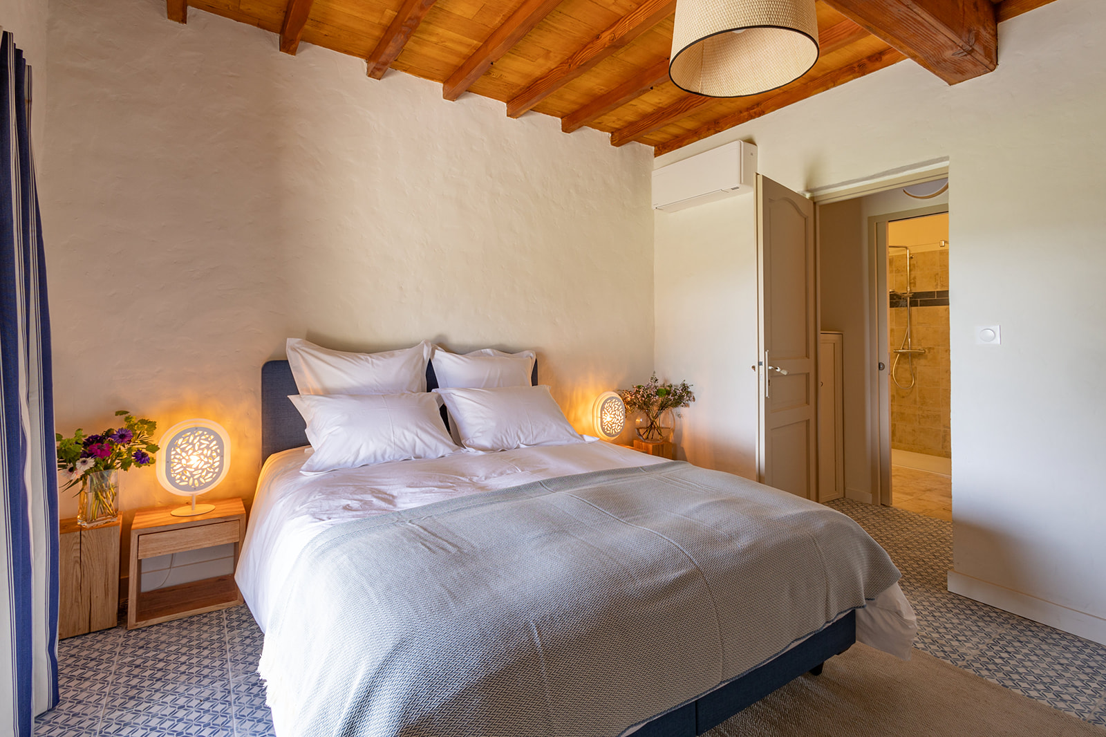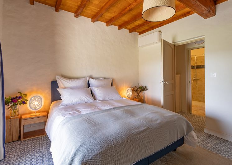 Vous y trouverez également deux chambres décorées avec goût, chacune compte sa salle de bain privative dont une avec baignoire. Vous pourrez passer de douces nuits reposantes grâce à une litterie de très grande qualité. L’une possède deux matelas en 90 que vous pourrez dissocier ce besoin et la seconde un matelas en 180. Les deux donnent accès à la terrasse où pous pourrez prendre votre petit déjeuner en profitant toujours de la magnifique vue.