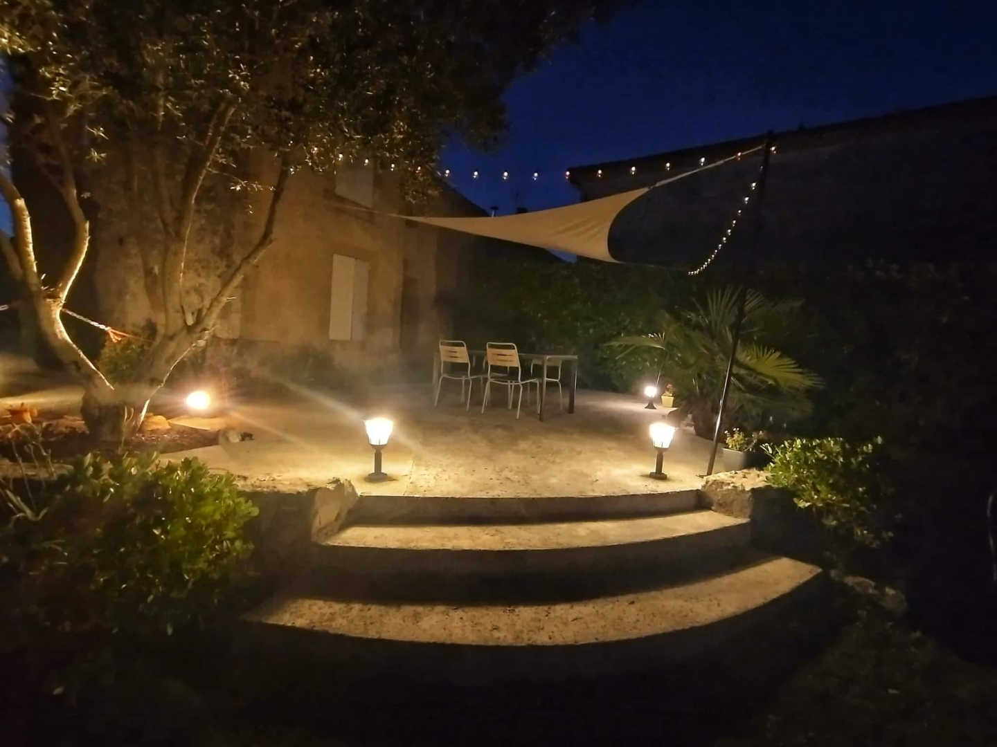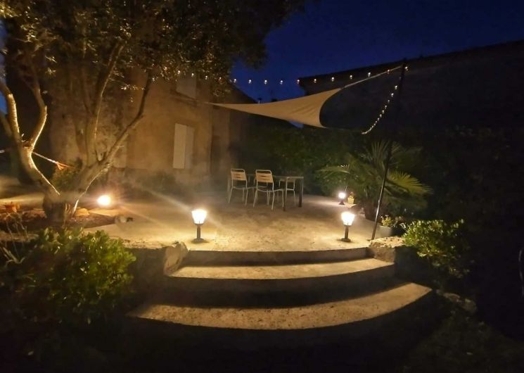 La maison ancienne entièrement rénovée. On accède au jardin et à la piscine par un petit chemin sur le côté du gîte.