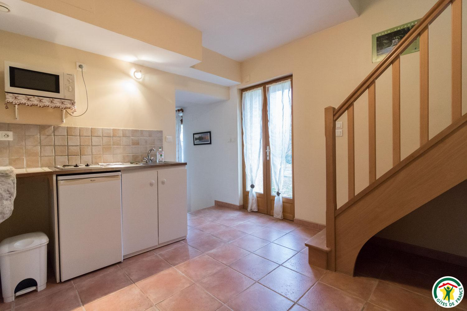 – ground floor: dining room, lounge and kitchenette for guests’ use, chambre Midi (1 double bed 140cm + shower room/WC).